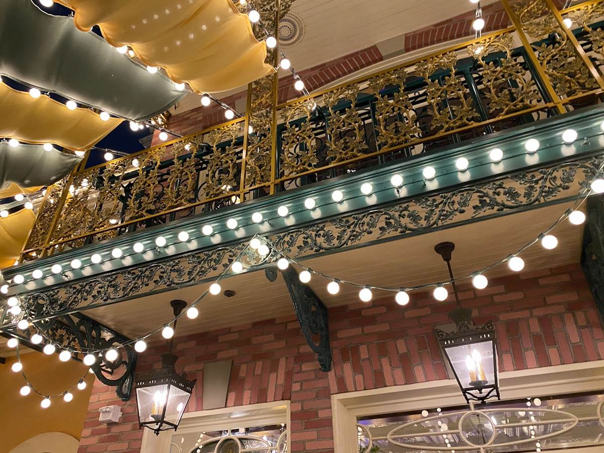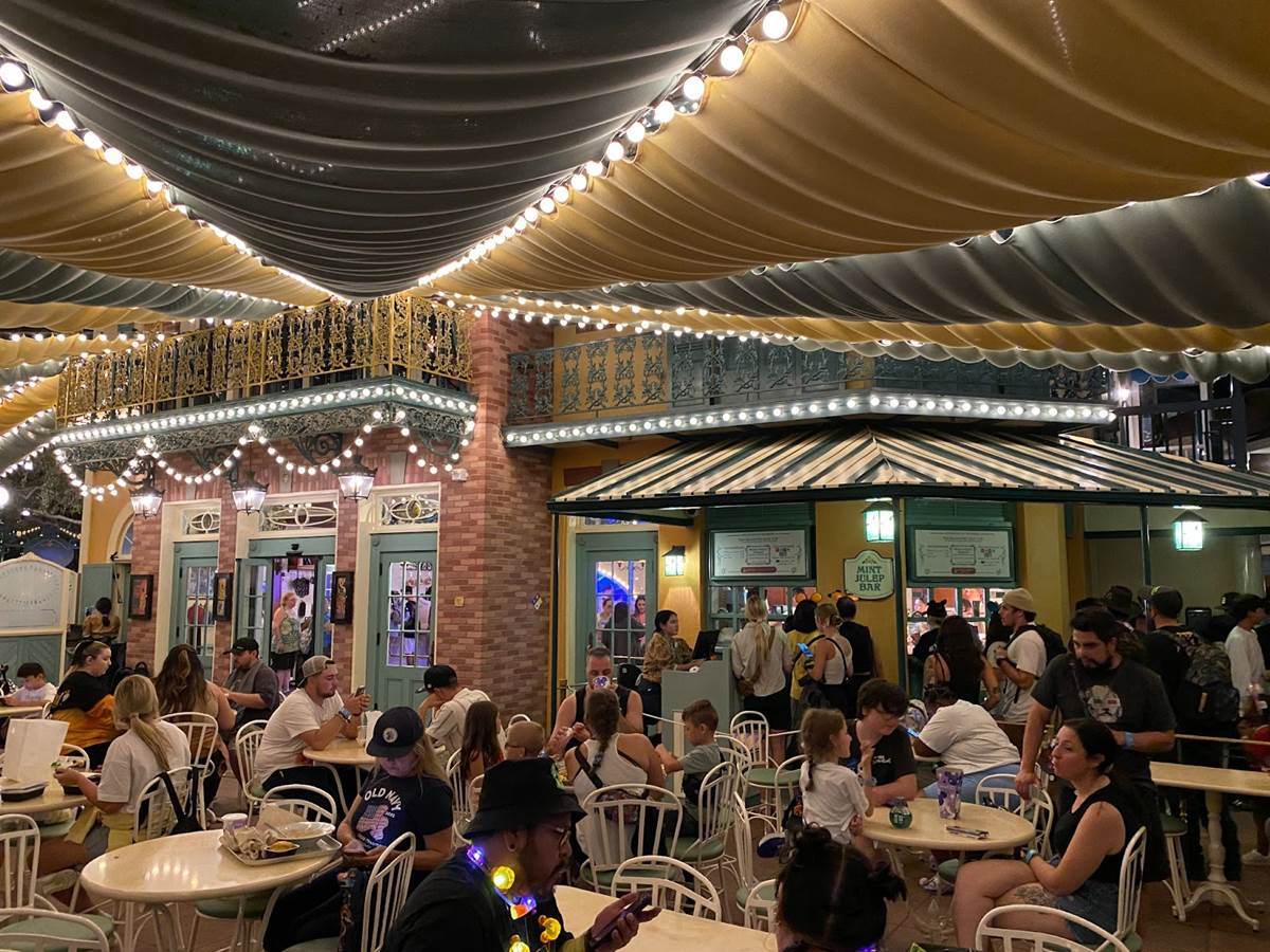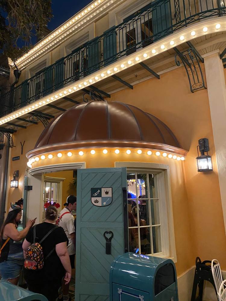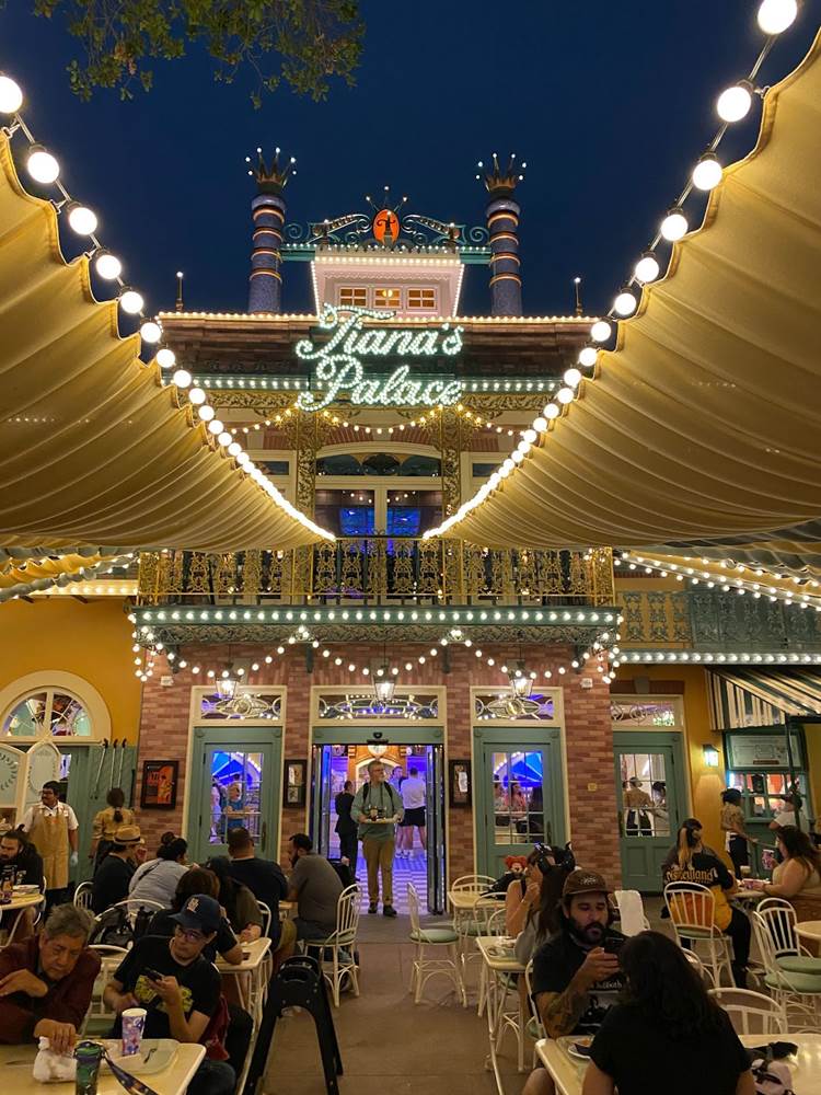 Thankfully I was able to return to Disneyland yesterday and get a taste of what Tiana’s Palace looks like after dark with its lights turned on. But first, I stopped by the Princess and the Frog-themed restaurant during the daytime to get photos of the views I couldn’t capture last week due to the construction walls.
