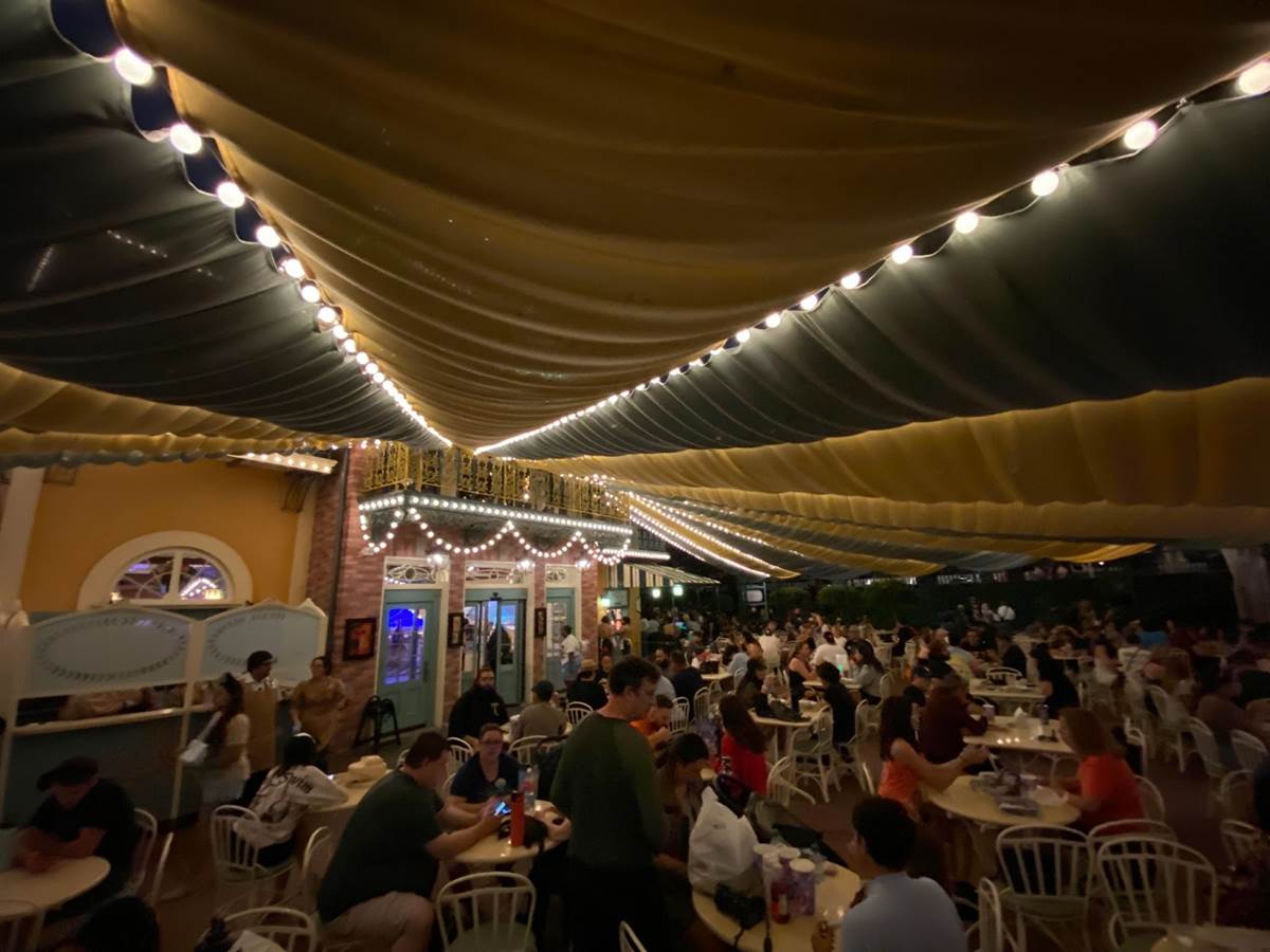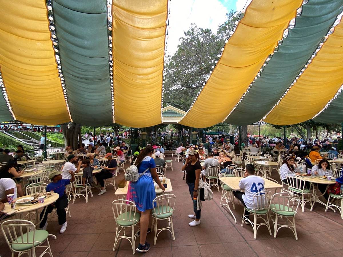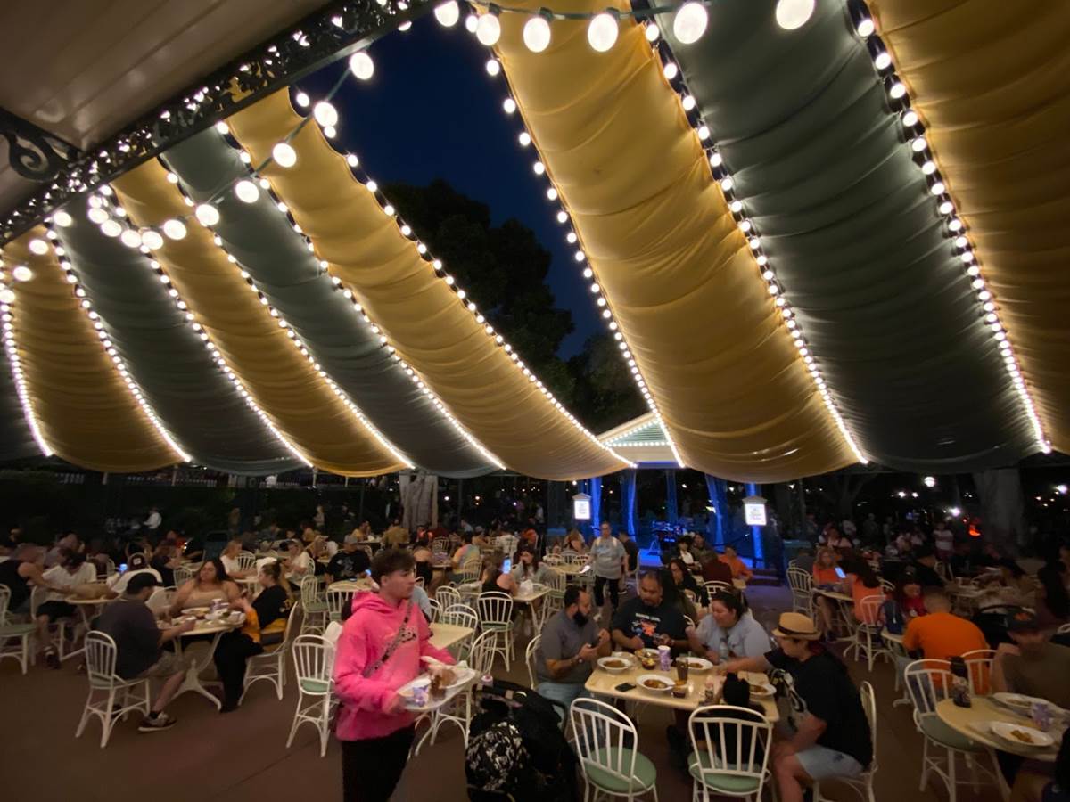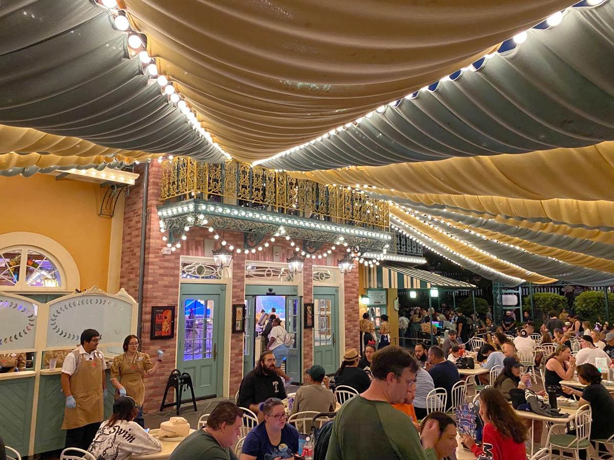 Thankfully I was able to return to Disneyland yesterday and get a taste of what Tiana’s Palace looks like after dark with its lights turned on. But first, I stopped by the Princess and the Frog-themed restaurant during the daytime to get photos of the views I couldn’t capture last week due to the construction walls.