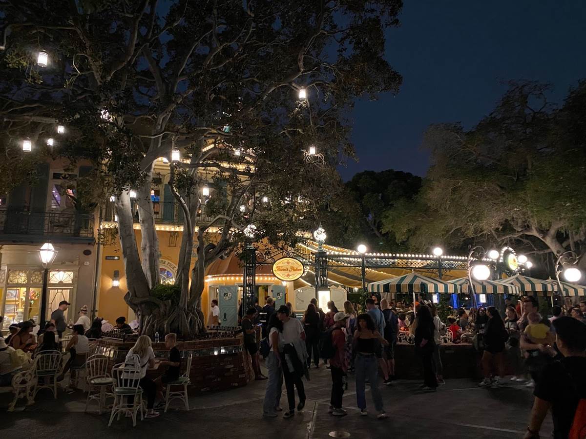 Last week Laughing Place was invited to participate in a media preview of the newly rethemed Tiana’s Palace restaurant (formerly the French Market) in Disneyland’s New Orleans Square, but during that visit the construction walls were still up around the location and we weren’t able to see it at nighttime.