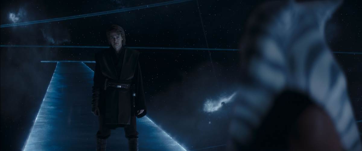 There, Tano encounters her old master– Jedi Knight Anakin Skywalker (guest star Hayden Christensen, who made his return to Star Wars last year in the Disney+ Obi-Wan Kenobi series), who offers Ahsoka the opportunity to complete her training, which she walked away from– for some pretty good reasons, by the way– in the fifth season of Star Wars: The Clone Wars. This begins a waking dream sequence in which Ahsoka relives parts of her younger life– here I thought for sure her more youthful self would be played by voice actress Ashley Eckstein, but instead it’s Ariana Greenblatt, who played young Gamora in Avengers: Infinity War (she may be getting typecast as younger versions of alien ladies in Disney properties)– fighting alongside Anakin in the aforementioned Clone Wars. So the design of all this, on Anakin’s part, seems to be to teach Ahsoka some sort of lesson, but what exactly that lesson is has been a heated topic of discussion between my wife and I since the moment we walked out of the movie theater hosting the Fan Event screening of “Shadow Warrior." The best we can figure is that Skywalker is trying to get across that the Jedi are more than the warmongers that Baylan Skoll (Ray Stevenson) made them out to be, and that Anakin himself is more than what he would become– namely the Sith Lord Darth Vader. What we’re not quite sure about is how exactly he demonstrated those ideas. Maybe I’ll pick that up on a second viewing.