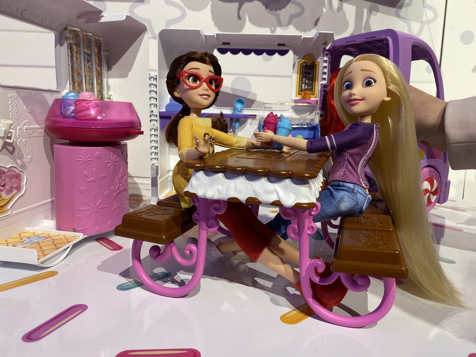 The Sweet Treats Truck allows you to take the comfy Princesses on the road in a sweet little camper. Open it up and the roof transforms into a picnic table made of an ice cream sandwich and chocolate bars!