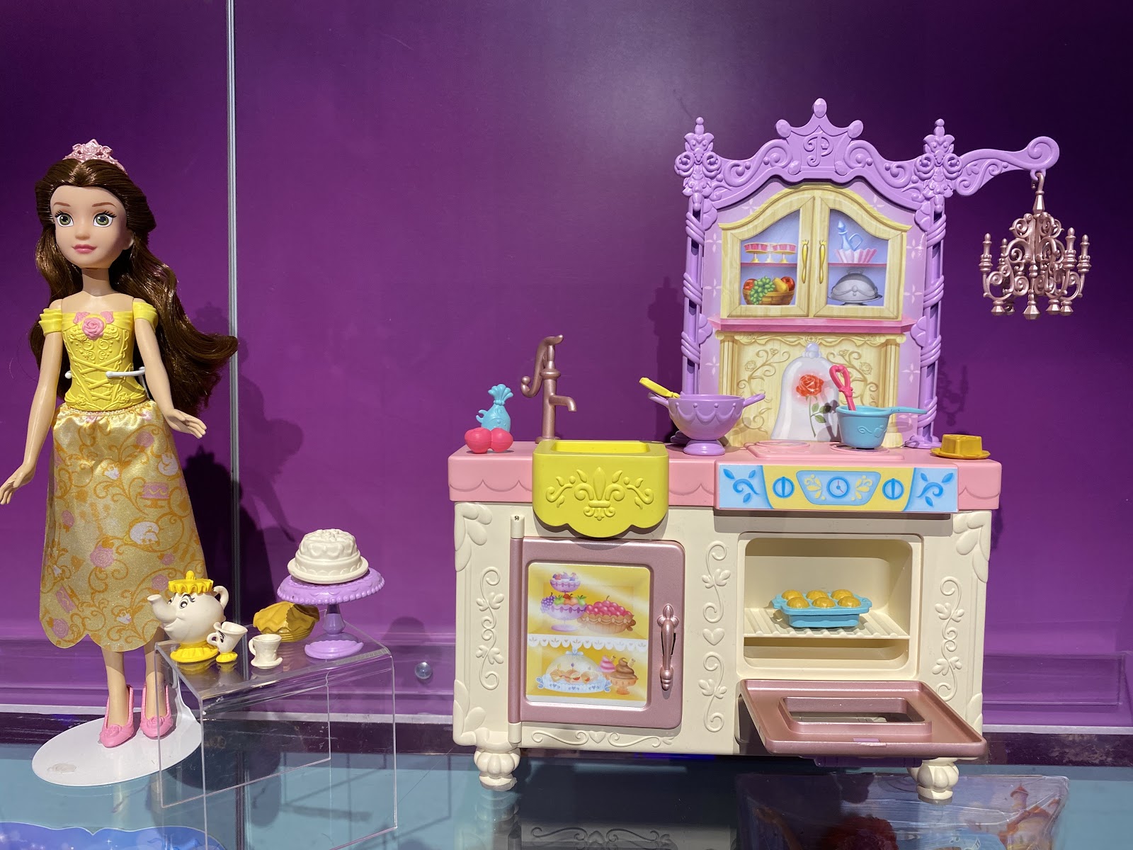 Cinderella and Belle will each receive playsets this year, like Cinderella’s outdoor tea cart and Belle’s kitchen, which comes with Mrs. Potts and Chip.
