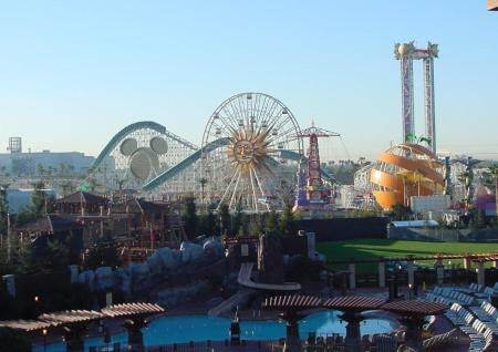 Finally, we come to the last original land in the park, Paradise Pier, celebrating the boardwalks of the state, with some traditional carnival-type attractions. Guests could walk through the abandoned S.S. Rustworthy or take a crazy ride through the mountains on Mulholland Madness, a wild mouse coaster. If a guest wanted to go around for a spin, they had a couple choices in the Orange Stinger and the Golden Zephyr, with the former being swings and the latter being a more vehicular seating structure. Guests had a couple other ways to spin around with the more moderate King Triton’s Carousel or one of the headliners of Paradise Pier, the Sun Wheel, with its legendary swinging and stationary gondolas. If the heights of the Sun Wheel weren’t enough, smaller guests could head to the Jumpin’ Jellyfish, while more adventurous guests could take a chance on the Maliboomer and soar to heights with great views of the park and Anaheim. Last but not least, there was the park’s signature thrill ride, California Screamin’, which had a great score to help guests really feel like they were getting the full boardwalk experience.