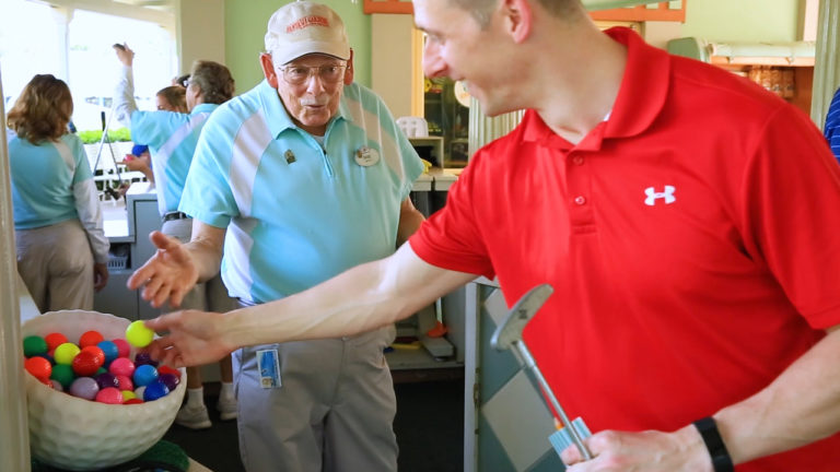 - Earlier this week the Orlando Sentinel shared the story and just today, Disney Parks Blog posted this video of an interview with the enthusiastic golfer and said "he’s become somewhat of a local legend and a lot of regulars request him to join them and provide tips."