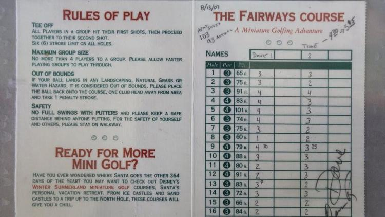 Has your dedication or love for a hobby ever turned into a job? While that might be a dream only scenario for many of us, it turned out to be reality for one Cast Member. Meet Dave Hartmann. Hartmann is a cast member at Fantasia Gardens in Walt Disney World and has been with the company for 11 years. He's played over 550 games on the course since 1996. As the story goes, Hartmann and his wife were visiting Walt Disney World when they drove by Fantasia Gardens. Intrigued, the two stopped to play a round of miniature golf and Hartmann liked it so much, he kept coming back. From 1996-2007 he played so much the manager of the course said he should work there.