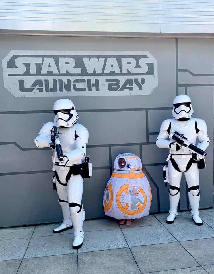 Star Wars mom, Brittany Beard, shared some adorable pictures and videos of her daughter visiting Walt Disney World for the special occasion. The young fan was dressed as BB-8 and happened to catch the attention of the Stormtroopers outside Launch Bay.