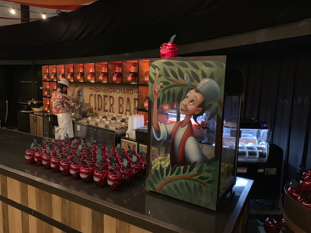 Right now, the theater is home to Johnny Appleseed’s Apple Orchard during the Food & Wine Festival. I love that Johnny Appleseed is finally getting a chance to appear in the park, and I’m excited to get a chance to check out the area myself when I am there this weekend.