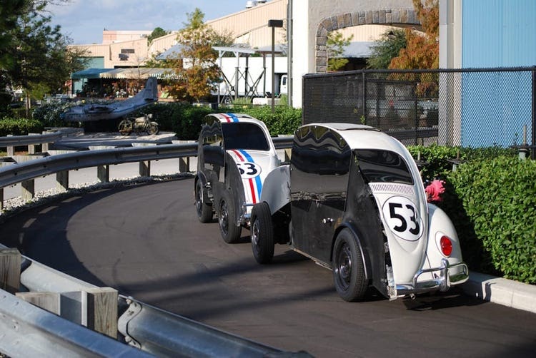 Before Lightning McQueen joined the show, Herbie the Love Bug had a scene in his place. While this scene’s placement also didn’t make a lot of sense, they at least used a pretty cool effect when they had Herbie split apart and each half was able to keep driving. It furthered the sense of movie magic unlike the scene that took its place.
