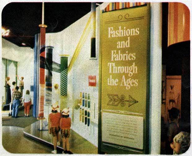 Fashions and Fabrics Through the Ages opened in March 1965 replacing the Hall of Aluminium Fame. Both of these attractions were sponsored by Monsanto, and I’ve got to say, the latter attraction made a lot more sense considering Monsanto is a chemical company. But the company made it work by focusing on the fibers that go into fabrics and diving into the science of closing as opposed to simply showcasing a bunch of different outfits.