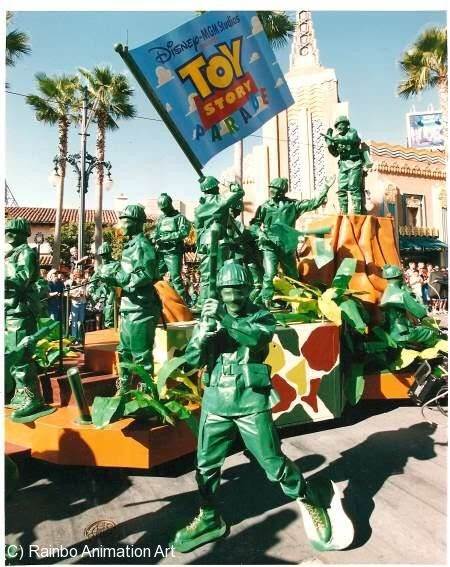 Additionally, we also got to see some fun Green Army Man action where they ran around and entertained guests while also managing to keep the show moving. It was pretty similar to what we see today in the Green Army Men shows that pop up, but with that added difficulty of constant movement. I couldn’t find anywhere to confirm this, but I have heard that the float the soldiers used eventually became the giraffe float in the Festival of the Lion King. It kind of looks like it, but not enough for me to confirm it, especially without a second source.