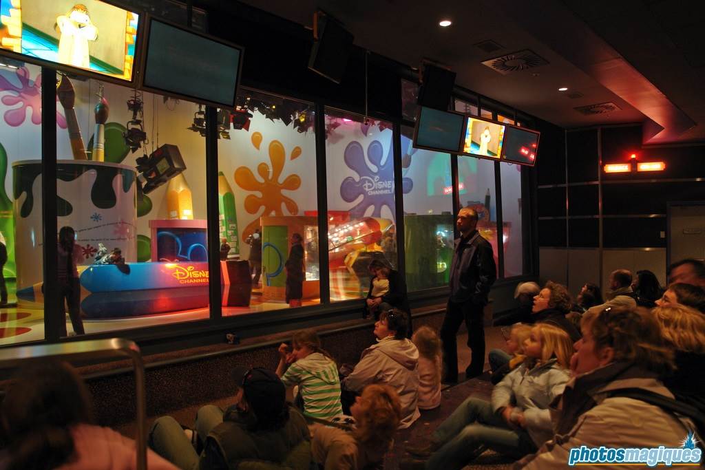 Opening on March 16, 2002, along with the rest of the park, the Television Production Tour strived to give guests a look at what Disney Channel productions were like behind the scenes. In its earliest days, a live cast member narrator took you through each room of the “production studio,” but after a few years, they switched to the more cost effective method of creating a video with a member of France’s Disney Channel to walk guests through the attraction.