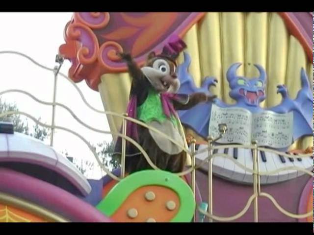 The show featured a really nice array of characters, all dressed up in their best ghostly attire. The whole Sensational Six was there, with about two per float, but that wasn’t all. We also had Stitch and Pleakey, who was really cleverly taking the place of Madam Leota. Chip and Dale also popped up playing a bat-themed organ where ghosts would pop out of the organ whenever they played. They’d played for the lovely Clarice, their love interest who I barely knew existed, who seemed to be actually up to no good since she was dressed up as the Bride. Finally, the Three Little Pigs appeared, and I’ve only ever seen them in two other parades in all the years I’ve been doing this. You just need to love the dedication these characters that the Tokyo parks have.