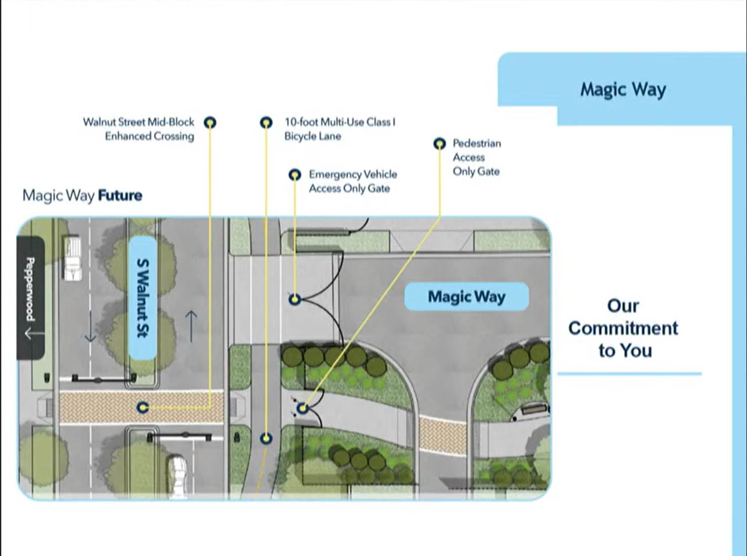 Today the Anaheim Planning Commission held a workshop on the DisneylandForward project. This follows the prior workshop that was held by the Anaheim City Council. Previously, there was a lot of consternation regarding Disneyland’s request to purchase and close Magic Way. However, most of the complaints did not stem from the actual traffic impacts, but more about the city selling something to Disney. If you think of it, if you are a resident of the area, would you want tourist traffic to come to your neighborhood? Following the hullabaloo, Disneyland did another traffic study and determined that 99% of trips on Magic Way were Disneyland guests. Less than 100 trips on weekdays and less than 10 trips on weekends are not Disneyland guests or cast members. Even with the de minimis impact, Disneyland did work with the actual residents that live near Walnut Avenue and determined what they could do to make their neighborhoods safer and easier to traverse. Disneyland is committing to building a bike lane on Walnut as well as a signaled crosswalk that would provide pedestrian access to the Disneyland Resort so those walking from Walnut would no longer have to jaywalk.