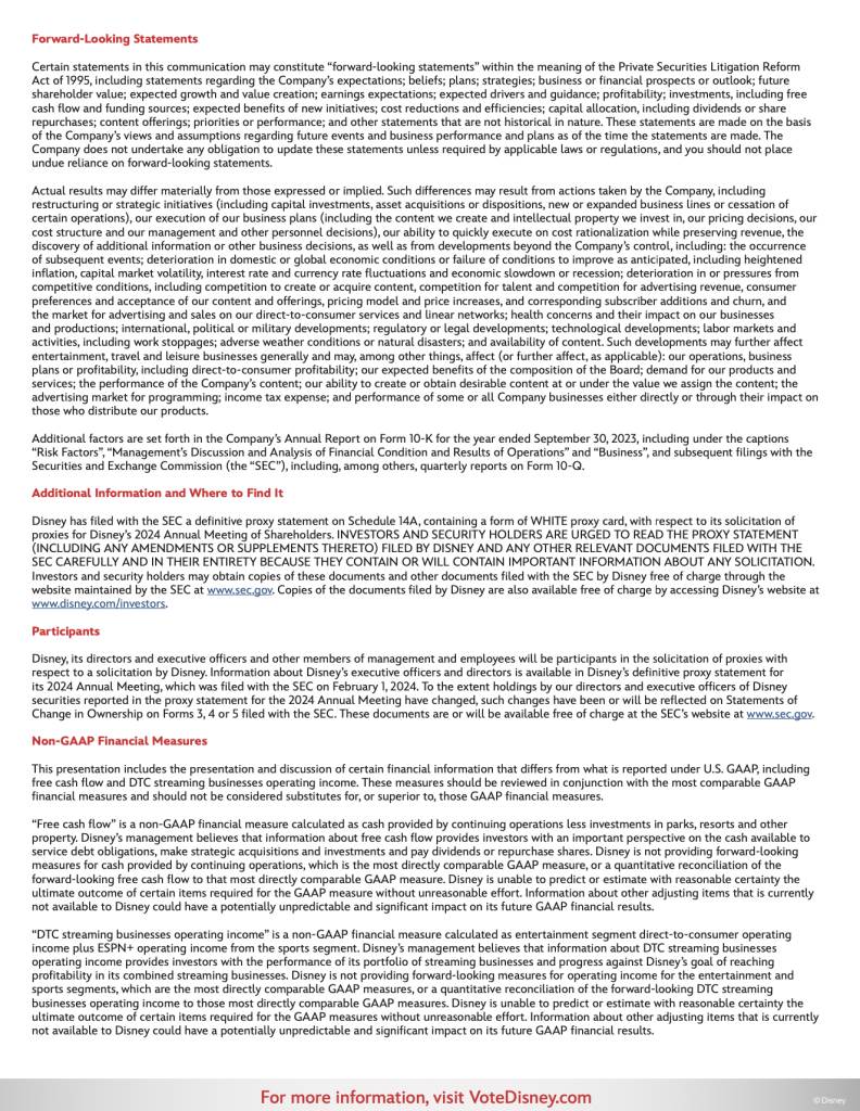 - The Company’s proxy statement and other important information related to the Annual Meeting can be found at VoteDisney.com.