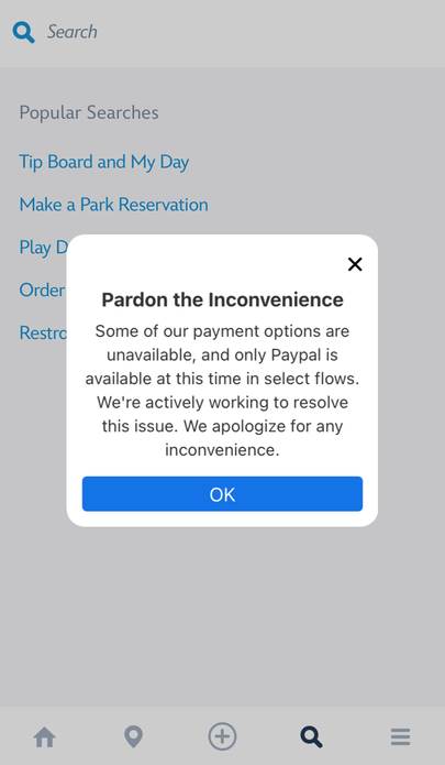 - All payment issues that were previously reported have been resolved, and the message that popped up when checking opening any of Disney’s apps where payments could be made (Disneyland App, My Disney Experience, Disney Store, etc) no longer appears.