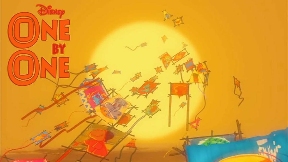 One by One is a traditionally animated short film from director Pixote Hunt and co-directed by David A. Bossert that tells the story of children in a South African town who fly kites down a hill after one boy sees a colorful feather flying around in the wind. As such, the kids go and find their own materials to create their own colorful kites and we see the children all playing together, flying their kites in harmony before cutting the kites loose and letting them fly into the sky.
