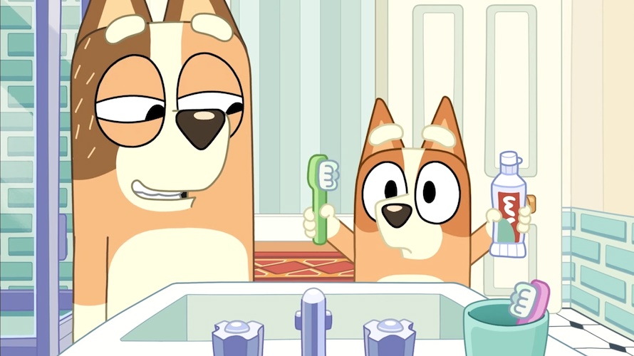 - Disney Jr. has shared a new clip from an upcoming Bluey Minisode, called “Robo Bingo," wherein we see the titular pup take on the necessary challenge of teeth brushing.