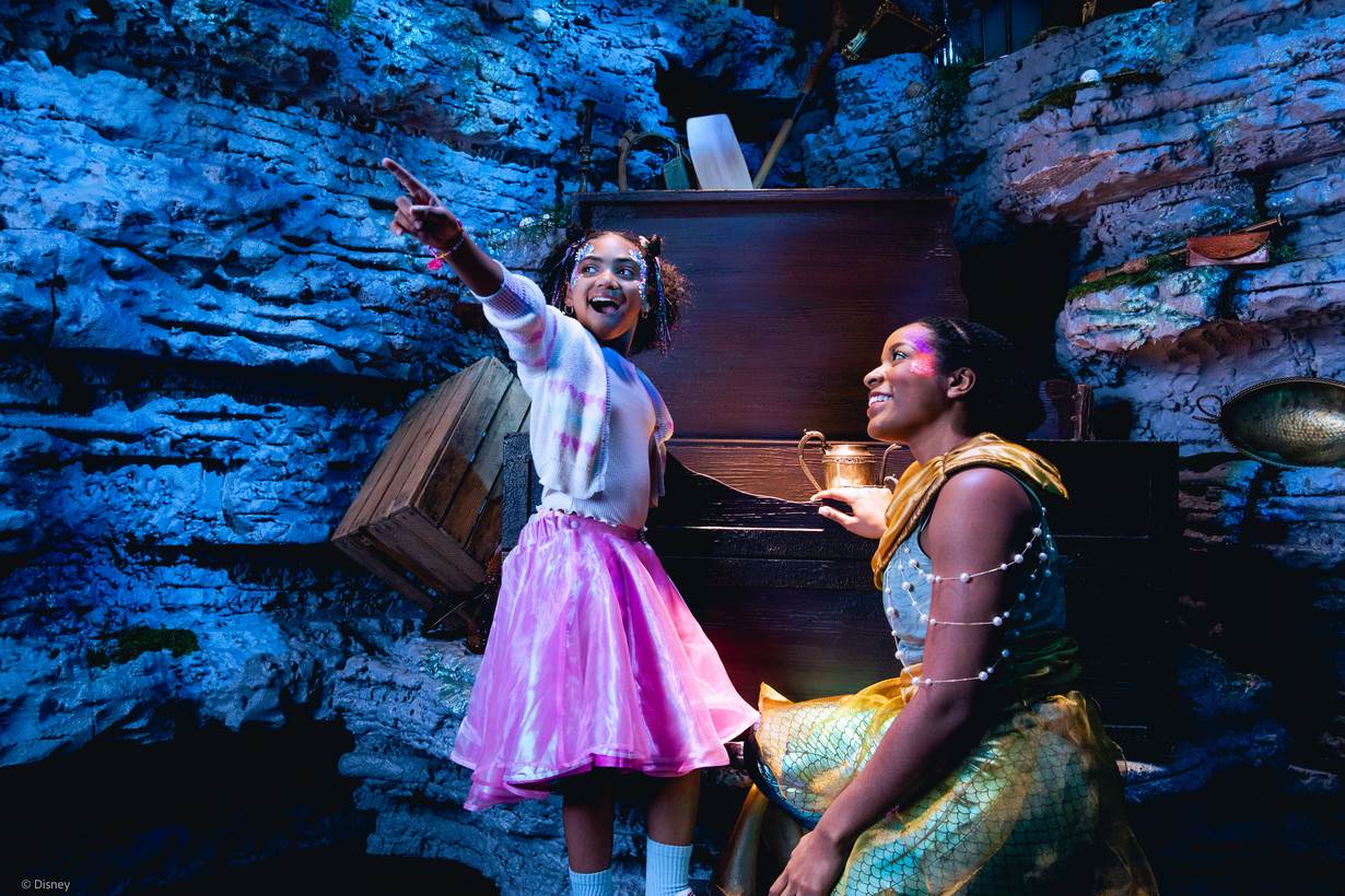 - The one hour attraction contains live music, puppetry, and magic as guests float their way through Triton’s Throne Room, discover Ariel’s treasures, and climb and slide through Ursula’s Lair. Guests will also be treated to a mermaid comedy show.