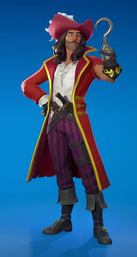 - Captain Hook (2,000 V-Bucks/ Around $18) – Includes outfit, LEGO outfit, Hook’s Flag back bling, Captain’s Foil pickaxe, and Tick-Tock emote.