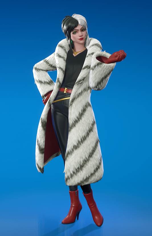 - Cruella de Vil (1,800 V-Bucks/ Around $16.50) – Includes outfit, LEGO outfit, Haute Handbag back bling, and De Vil’s Grille pickaxe.