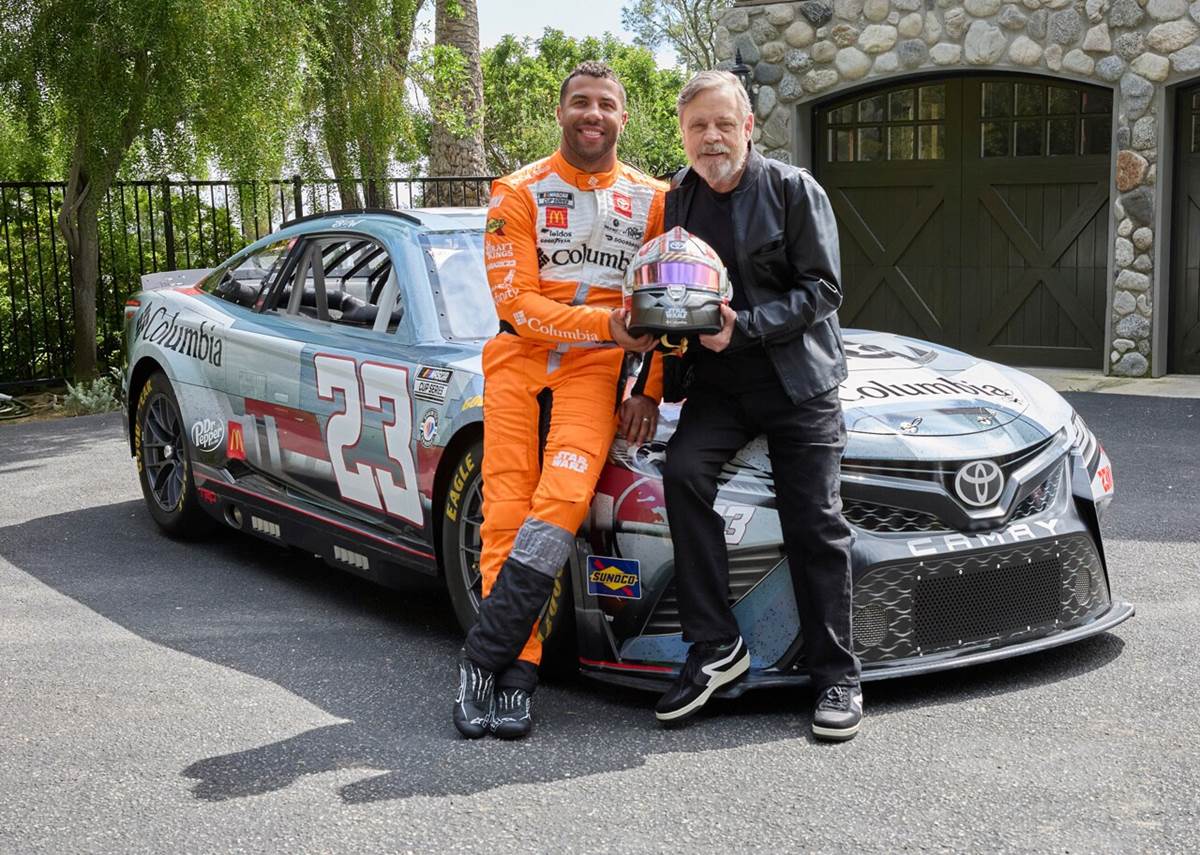 - Columbia brought Mark Hamill and Bubba Wallace together for a special meeting at the actor’s home. “He got to interact a little bit with Bubba's orange suit and the helmet, which he got a kick out of, especially when Bubba was in the full setup," Araujo says.