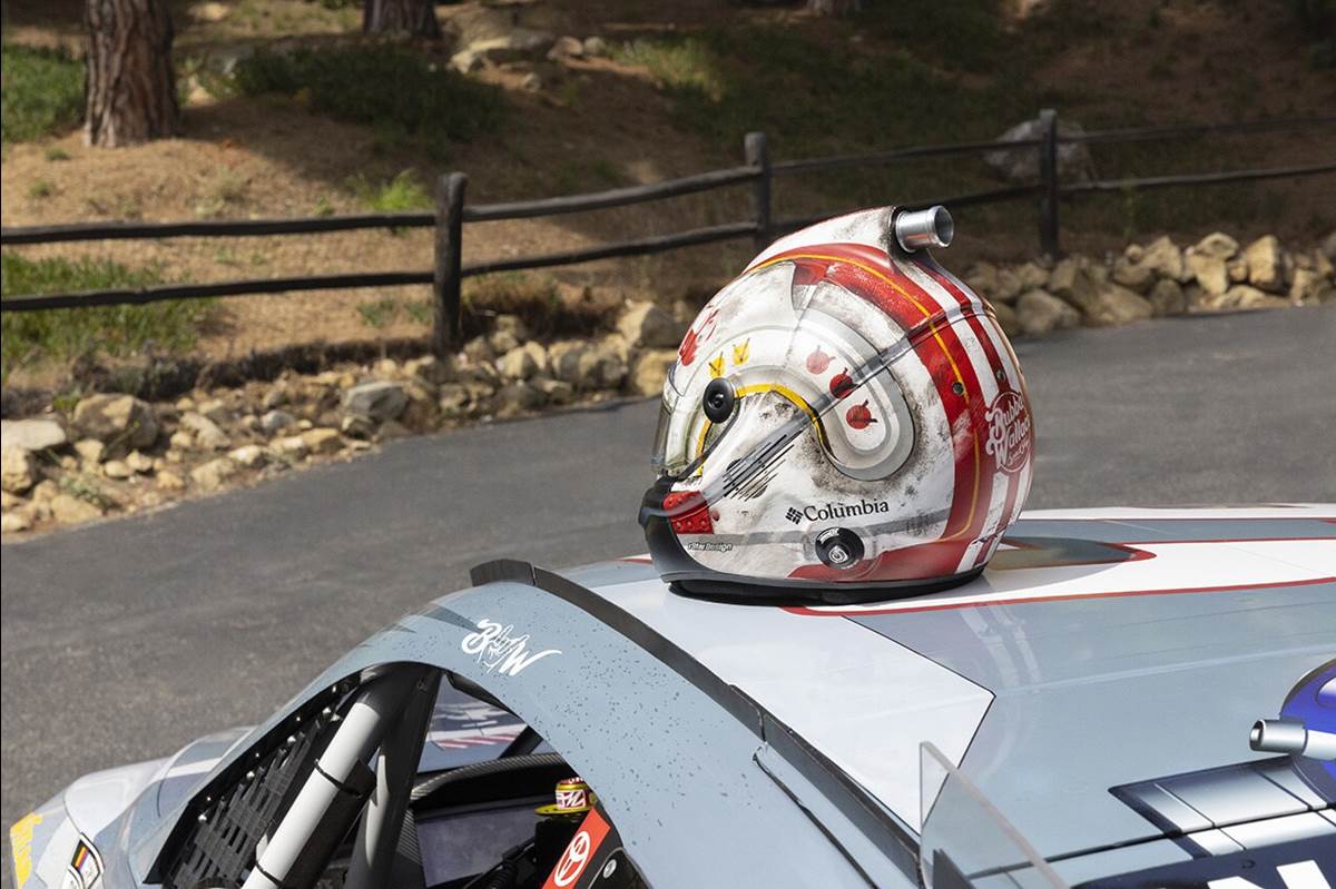 - Araujo decided that all the core elements of an X-wing had to come over to the car. “I had to take lots of detailed photos -- taking into mind where the proportions of the car were, where the door was hitting, where the windows were hitting, where the driver would sit and translate all those paneling details to the side of the vehicle," he says. Wallace’s racing suit and helmet, made to look like Luke Skywalker’s, also had to meet certain regulations. “There's a lot of standards, as you can imagine," Araujo says. “So we partnered very closely with Alpinestars, who's the builder of Bubba's suits, and we tried to figure out, ‘Okay, how do we translate some of those details?’ We had to be very mindful of the elements we were going to extract and then translate to the driver's suit."