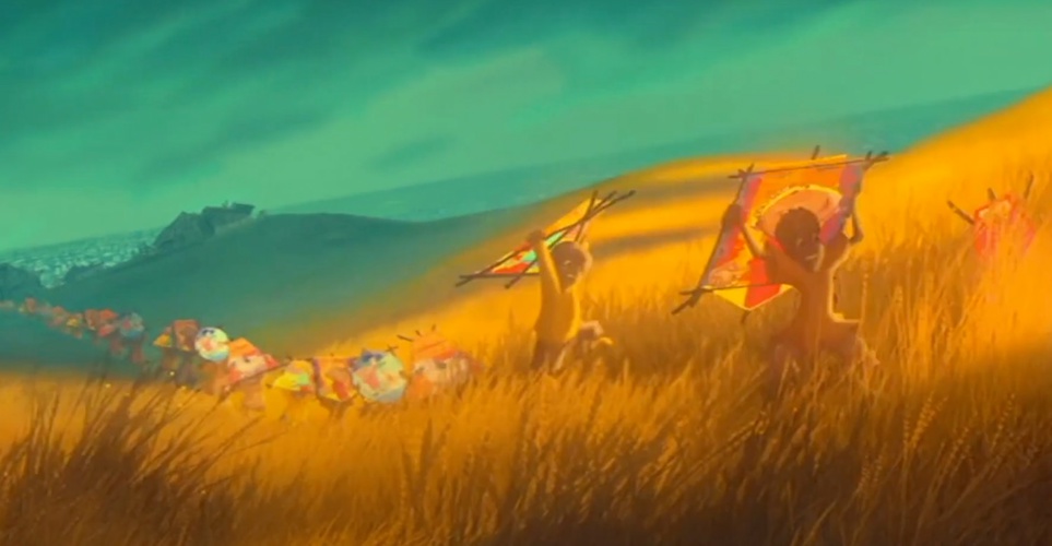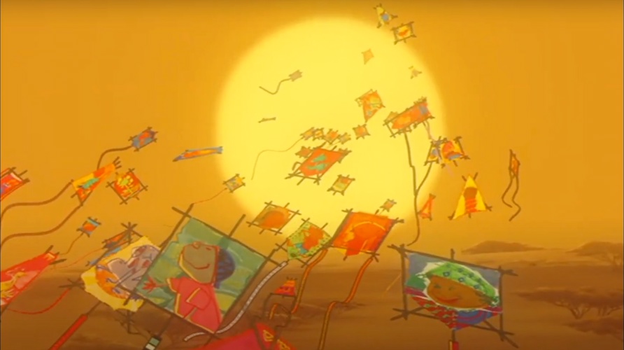 Using a song developed for The Lion King, Lebo M’s “One by One," the short opens on a colorful feather that is seen by children in a South African town. Using this (and a windblown piece of newspaper), the children are inspired to then collect goods around town and create their own colorful kites to take to the skies. After working together and having fun, all the kids take their kites and release them into the sky, with each colorful creation flying free.