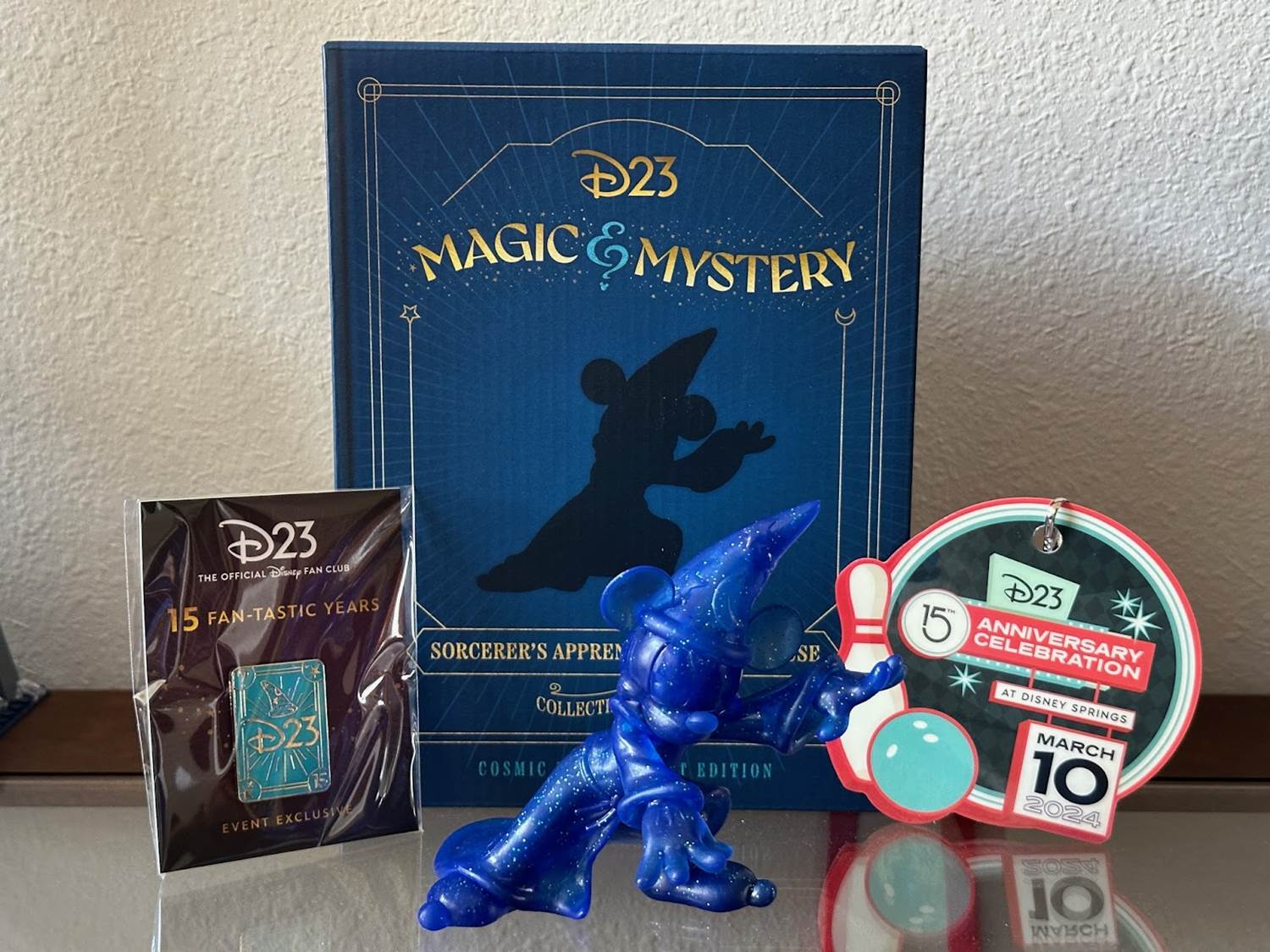 The event-exclusive “Cosmic Blue" variant of the Sorcerer’s Apprentice Mickey Mouse Figurine from the 2024 D23 Magic & Mystery Gold Member Collector Set, along with a D23 event-exclusive D23 15th Anniversary Pin really stands out as one of my favorite gifts from events over the years. Plus, it made me really excited for my 2024 D23 Gold Member Collector Set.