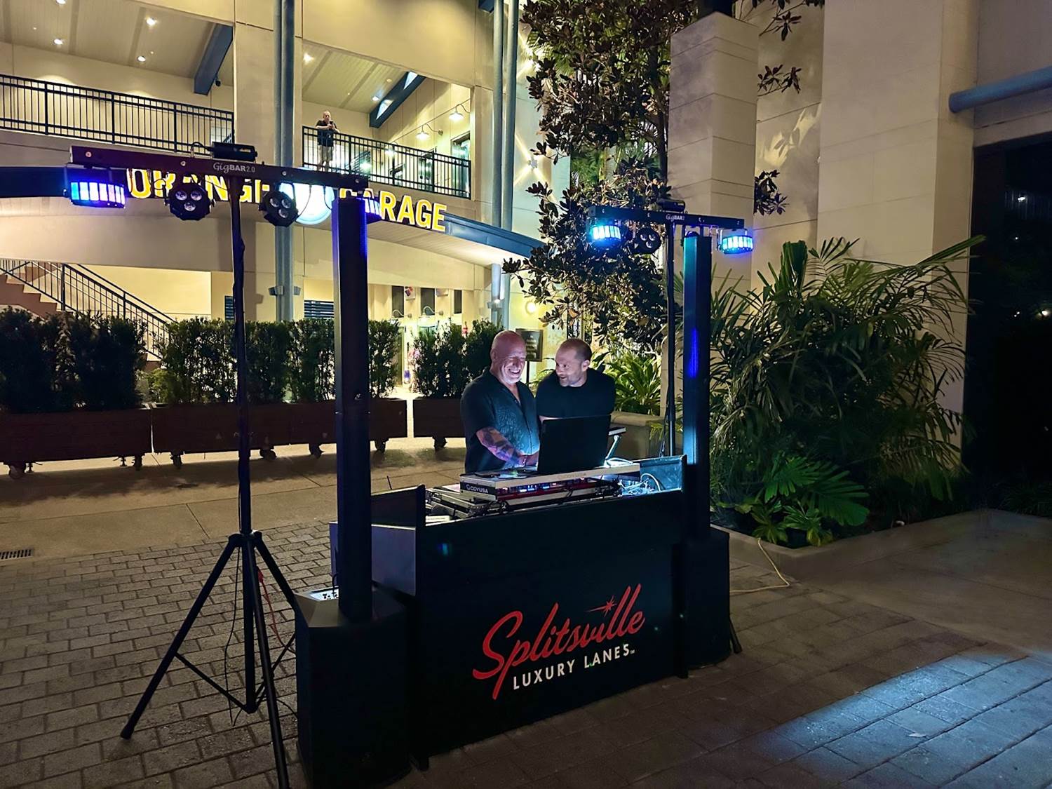 The other hot ticket (besides the bowling) was the Everglazed donuts. The area between Splitsville and Everglazed was closed off, offering guests an area to enjoy a DJ, drinks, and more food as well as pick up a complementary donut and drink. This area really did pick up as the night went on with the DJ on one end of the alley and live entertainment taking requests at the other end at the Splitsville outdoor bar.