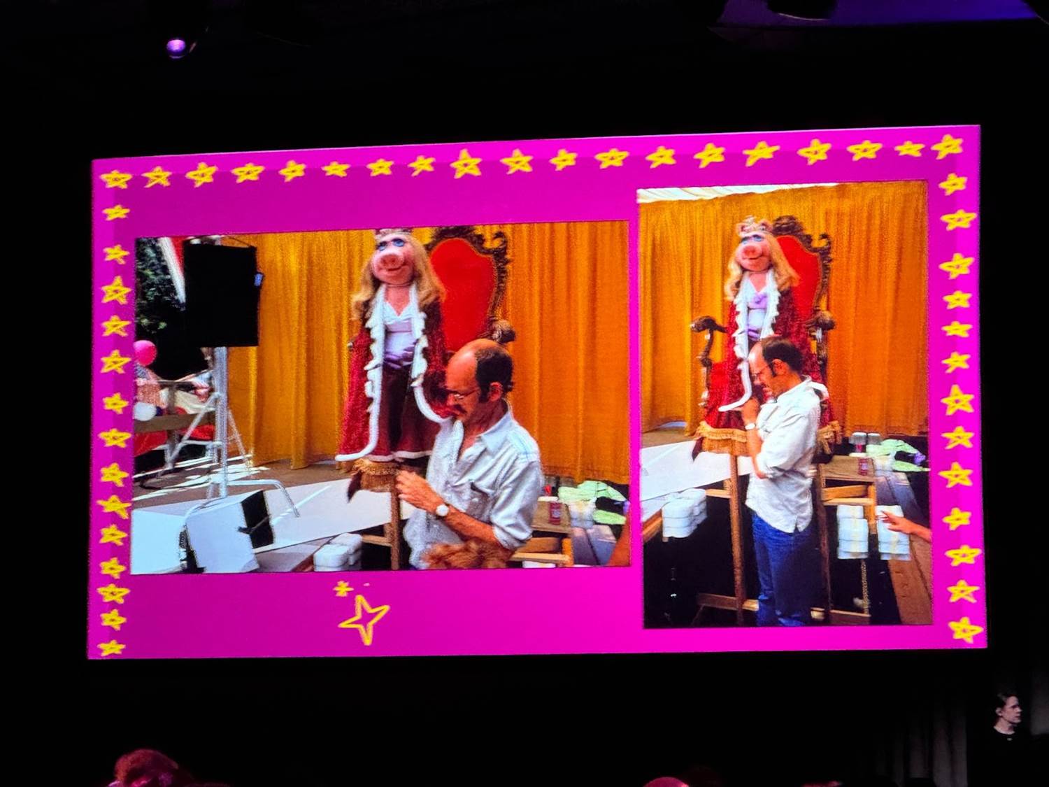 Becky Cline talked about having actually witnessed Jim Henson filming Muppet*vision 3-D on the Burbank Walt Disney Studios lot in 1989, and Iglesias mentioned that Kermit’s banjo (which was not present) from The Muppet Movie has also recently joined the collection of The Walt Disney Archives and is currently being restored.