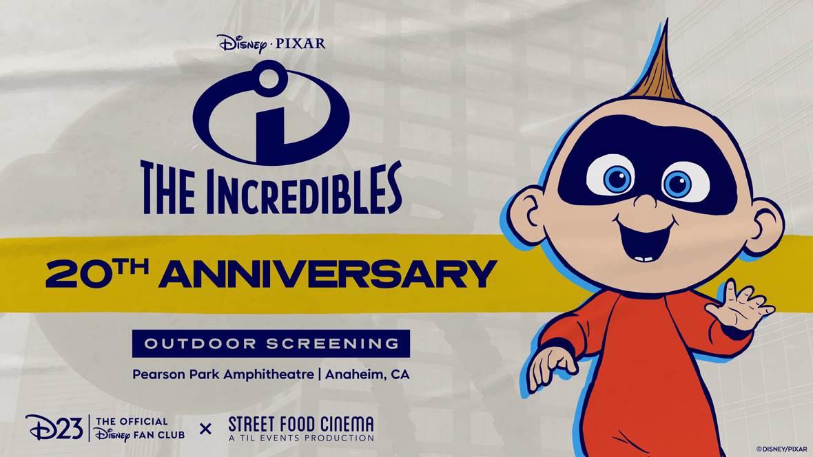 - Previously announced, a special screening of the Pixar Animation Studios film, The Incredibles will allow fans to celebrate 20 Years of sensational supers and fantastic family fun with D23: The Official Disney Fan Club and Street Food Cinema. As part of the D23 Ultimate Fan Event, the official Disney fan club is powering up this celebration for an unforgettable evening, welcoming guests at the grandiose Pearson Park Amphitheatre in Anaheim, California.