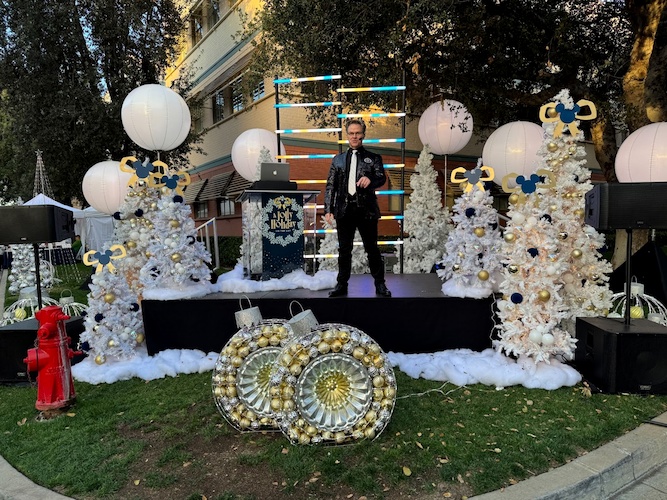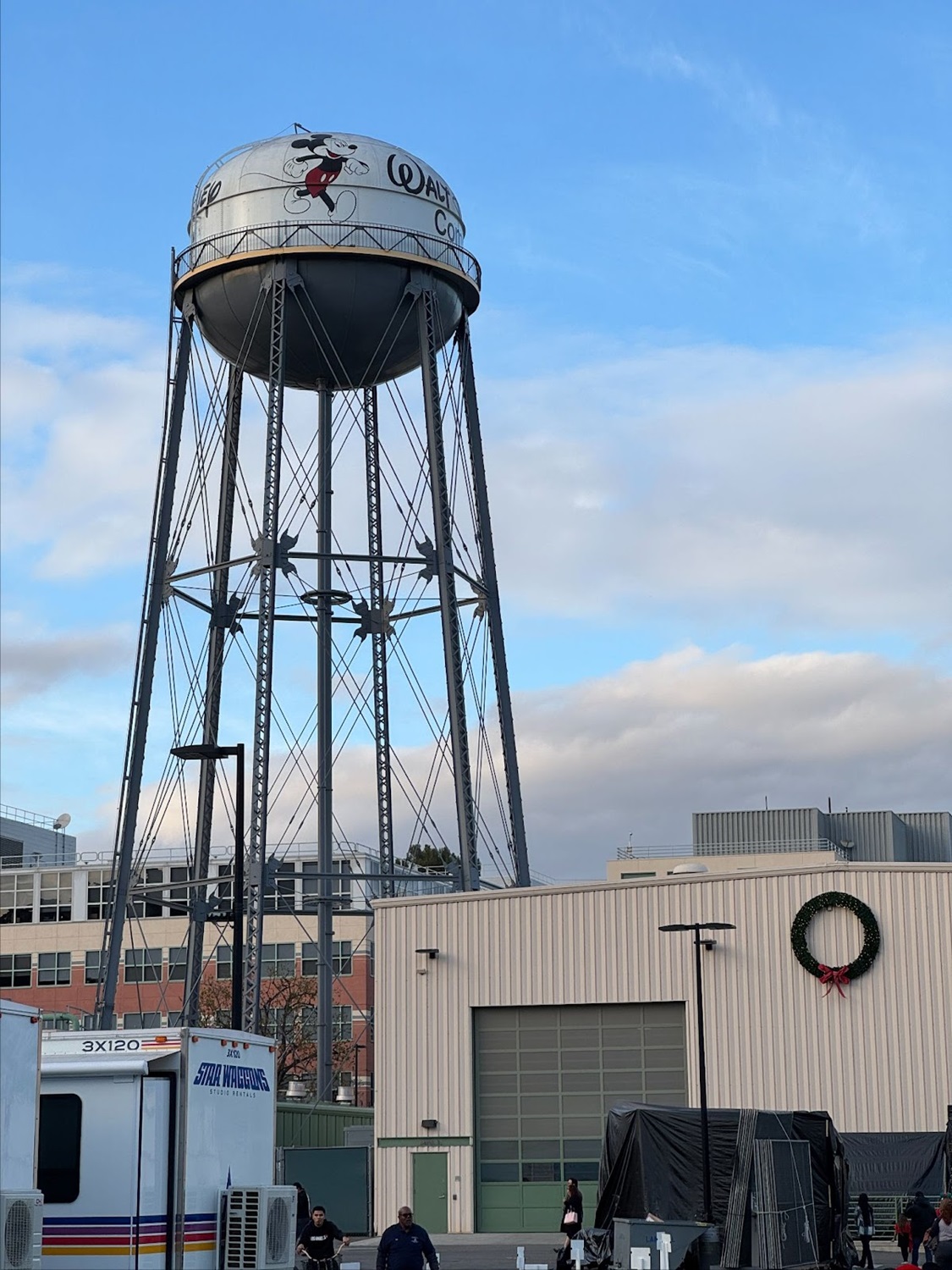 I arrived at the famous Walt Disney Studios lot in Burbank ahead of the 4:00 PM start time for A Jolly Holiday On the Lot, and checked in at the tents located near the studio’s iconic water tower.