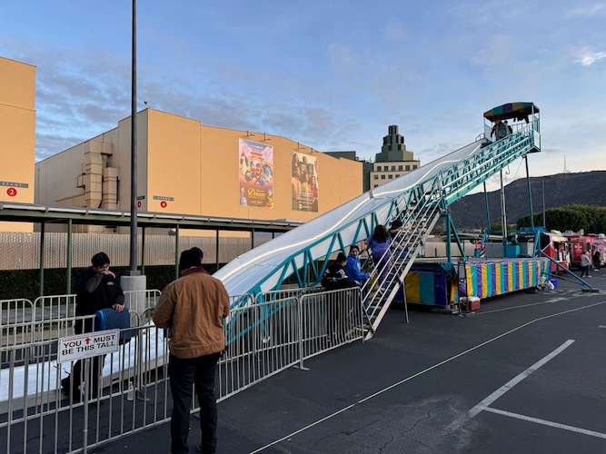 More shopping could be accomplished in the lot’s Studio Store and another tented section, where some exclusive merchandise items sold out very fast. There were also a number of food trucks and a fun-looking slide accessible to attendees.