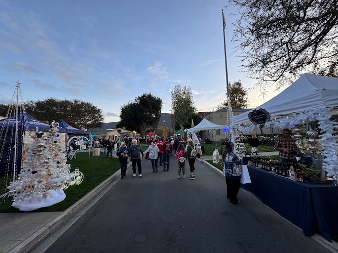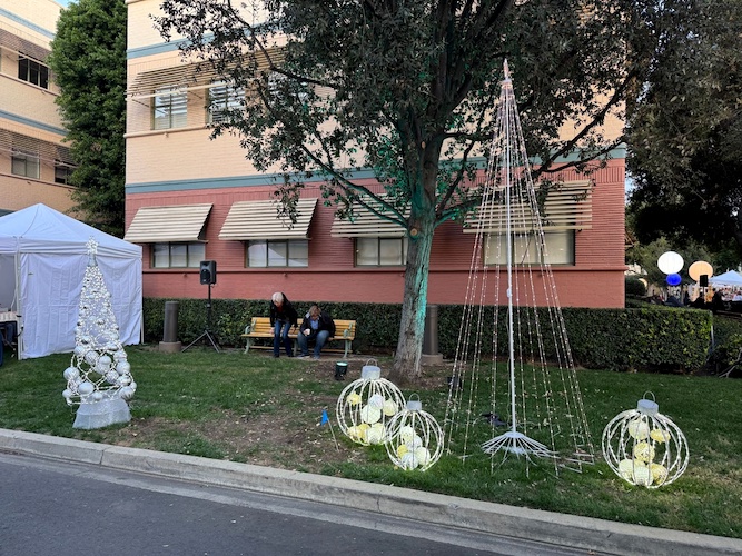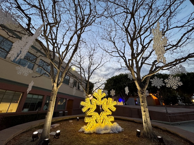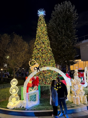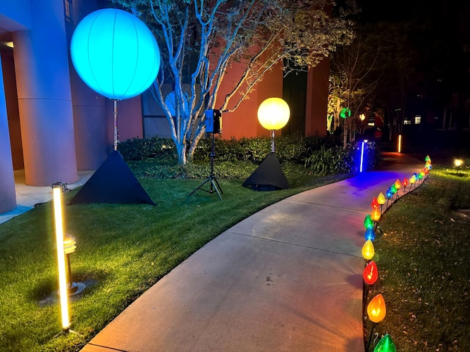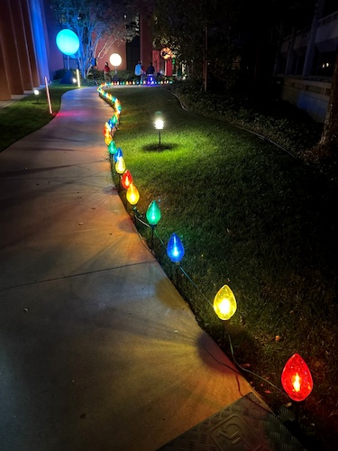 By the time I completed that first lap around the lot, night had fallen on Burbank and A Jolly Holiday was lit up with all of its many colorful lights.