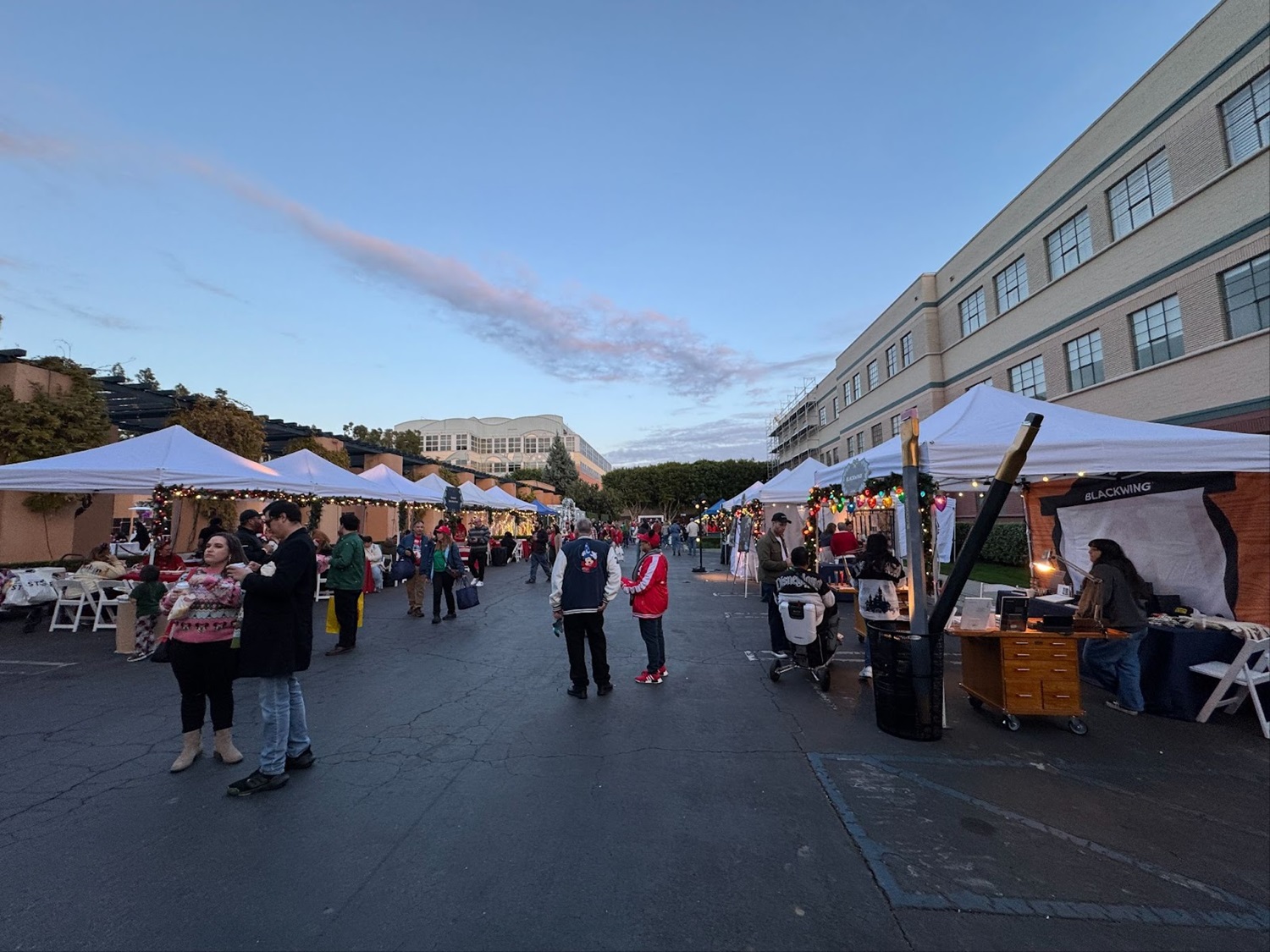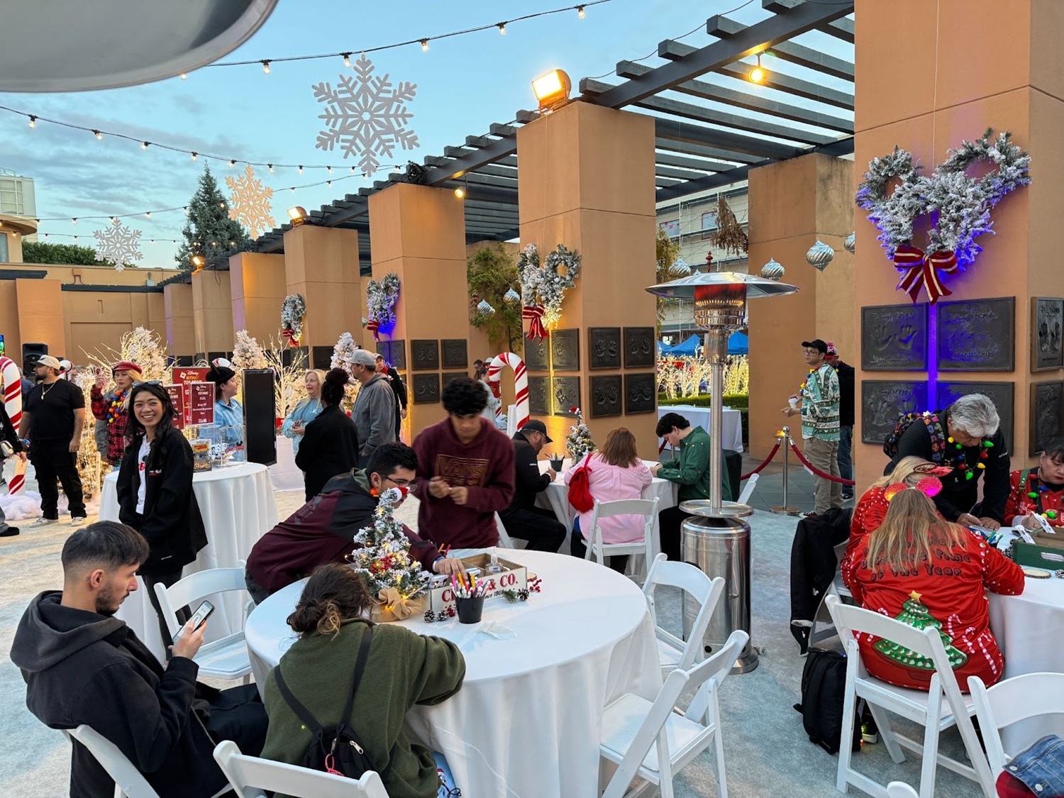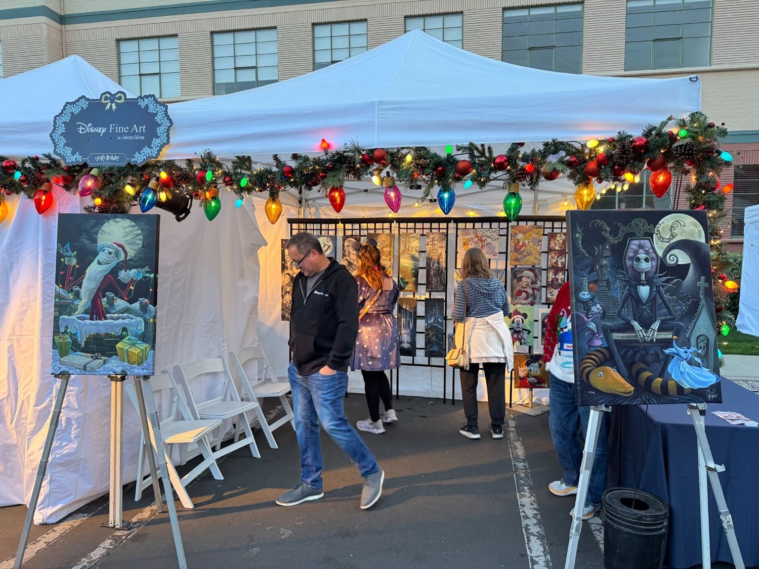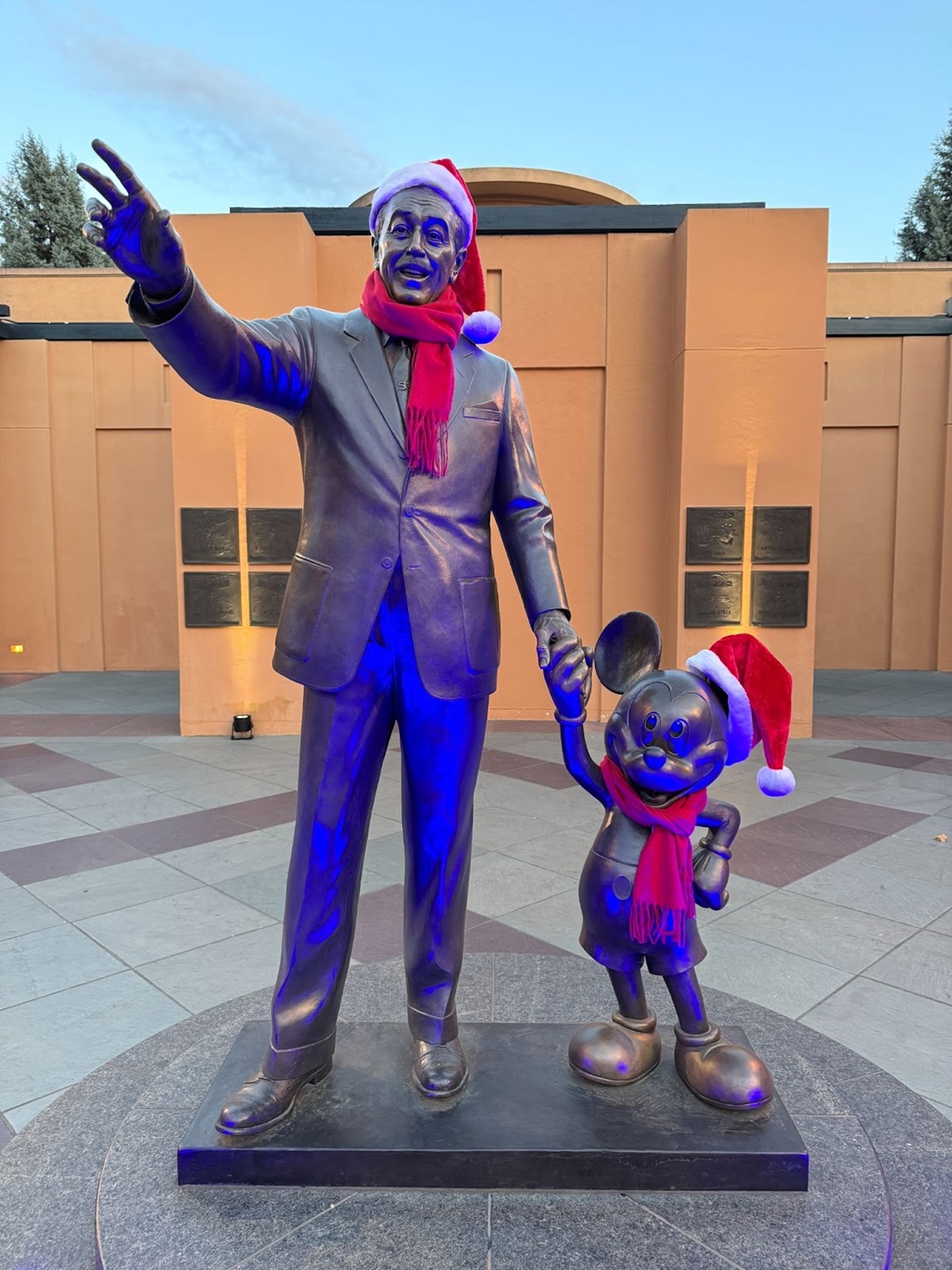 The north section of the lot felt the most wintry to me, with the Team Disney building’s Seven Dwarfs lit up for the season, Toys for Tots represented by the United States Marine Corps, and even Roy O. Disney, Minnie Mouse, Walt Disney, and Mickey Mouse dressed in Santa hats and red scarves via their respective statues in Legends Plaza. Plus there were more shopping booths and games for attendees in this area of the event.