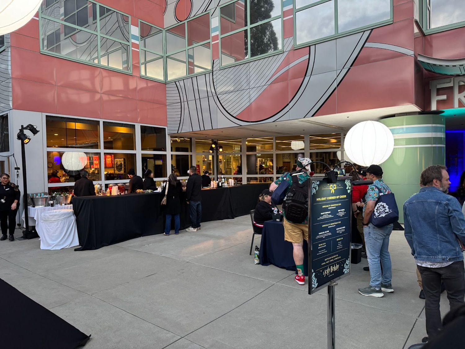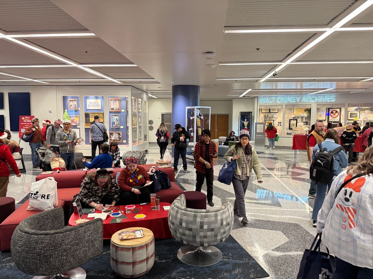 Down by the lobby of the Frank G. Wells building was the adults-only bar called the “Holiday Corner of Cheer," and the interior housed an event-exclusive display of holiday costumes from parks and movies put on by The Walt Disney Archives.