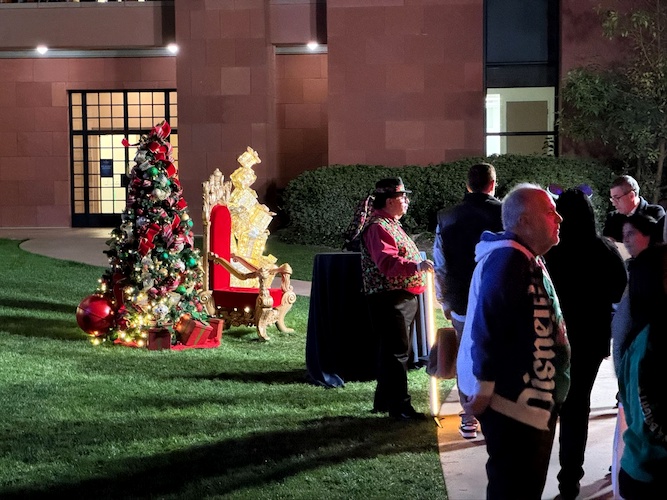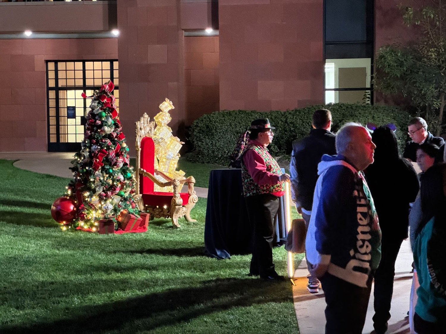 Mickey Mouse was camped out in front of the lot’s Christmas tree, also decorated quite nicely.