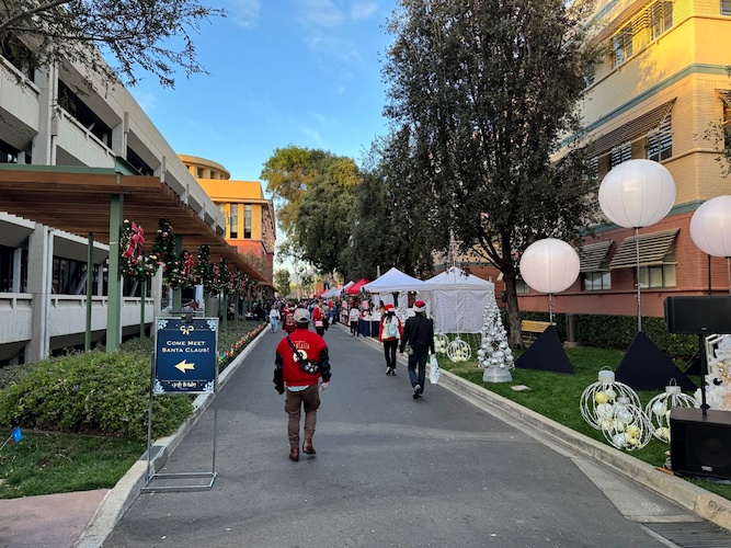 Walking from there over to the area of the lot where the event was being held, I saw that Disney and D23 had gone to great lengths to decorate the studio for this year’s holiday season. I also was able to scan a QR code on a sign to access the map for A Jolly Holiday On the Lot.