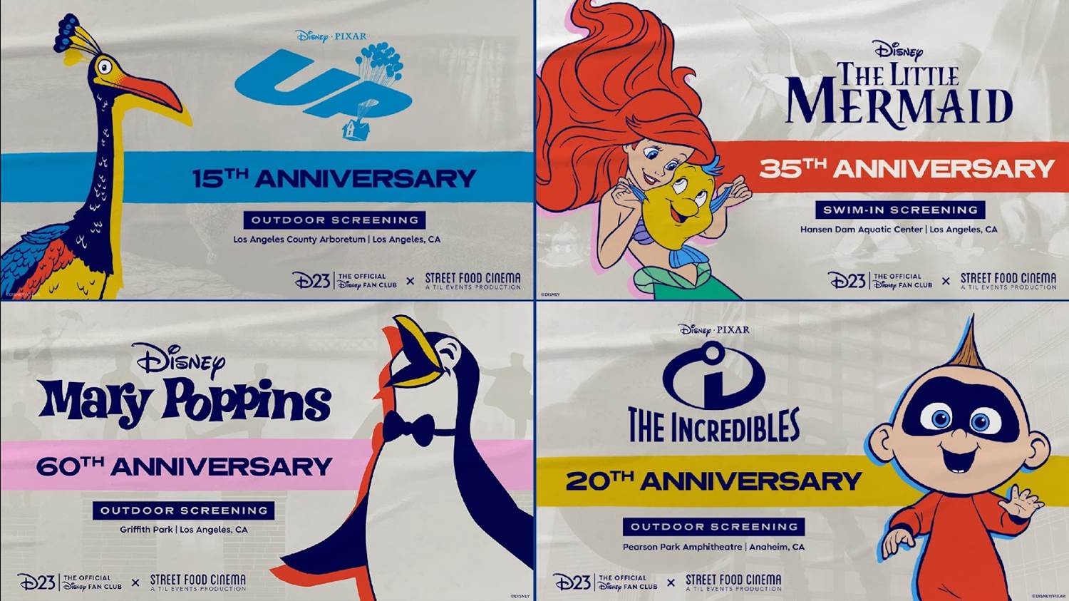 D23 is partnering with Street Food Cinema to host a number of outdoor movie screenings this summer, celebrating the anniversary of four classic Disney & Pixar films.