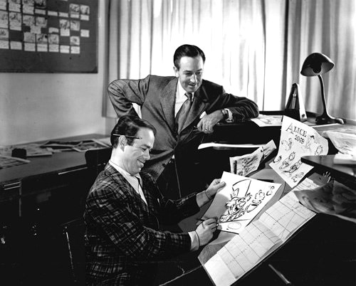 If ever there was a film full of characters meant for Ward Kimball, it was 1951’s Alice in Wonderland. Disney’s version of the classic Lewis Carroll tale leaned heavily on Ward’s comic cartooning sensibilities. As such, Ward acted as supervising animator for numerous characters, including Tweedledee and Tweedledum, the Walrus, Cheshire Cat, Mad Hatter, and March Hare.