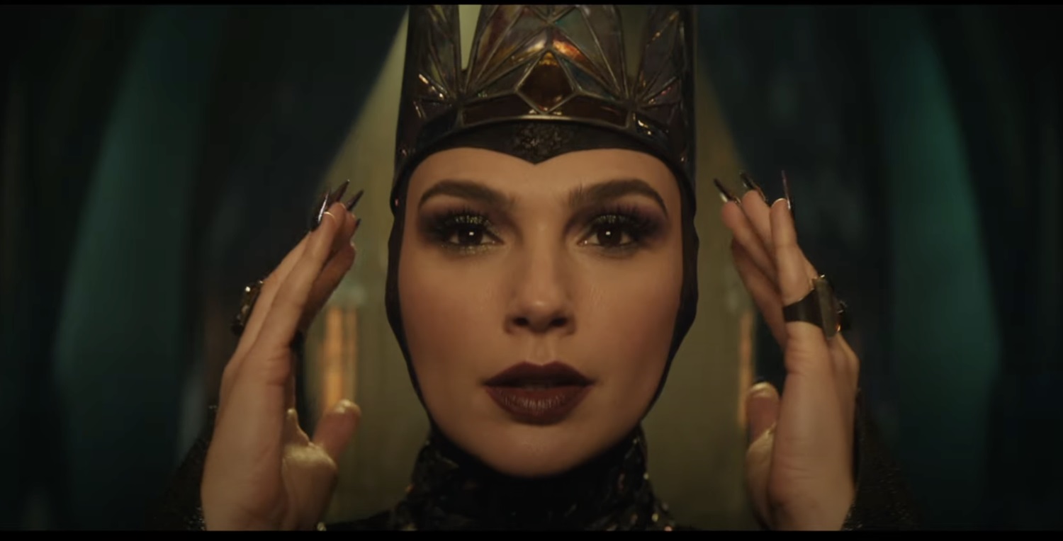 - We also get a glimpse (or sound byte) of some of the songs from the film, including a blink-and-you’ll-miss-it moment featuring choreography during what appears to be a musical number from the Evil Queen, played by Gal Gadot.