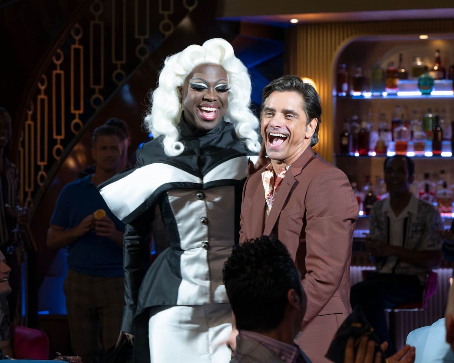 Also on board are a pair of travel influencers [barfs] who bring their own food on board. Nothing like a diet of homemade sweet potatoes to make you go “Wait, why are we paying full price for this cruise if we aren’t even eating what’s provided?" Bob the Drag Queen kicks off the first night in the dining room with a surprise lip sync performance of “HOTTOGO" and the queers are living. That is, until Bob goes and lights her wig on fire by leaning into a candle.