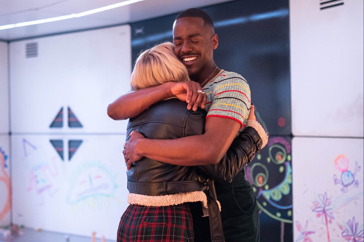 The two leads were asked what the two emotional anchors for their characters of the Doctor and Ruby Sunday are. Ncuti answered with compassion and curiosity, while Millie went with adventure and motherhood. Ncuti was trusted and encouraged to craft his portrayal of the Doctor, giving him a level of freedom that he was quite surprised by. The missing piece of his characterization came when Millie walked into the audition room. The vibe of his Doctor then made sense to him – cheekiness, curiosity and sense of adventure. He was also pushed by the producers to explore and be expansive with his many costumes, created alongside costume designer Pam Downe.