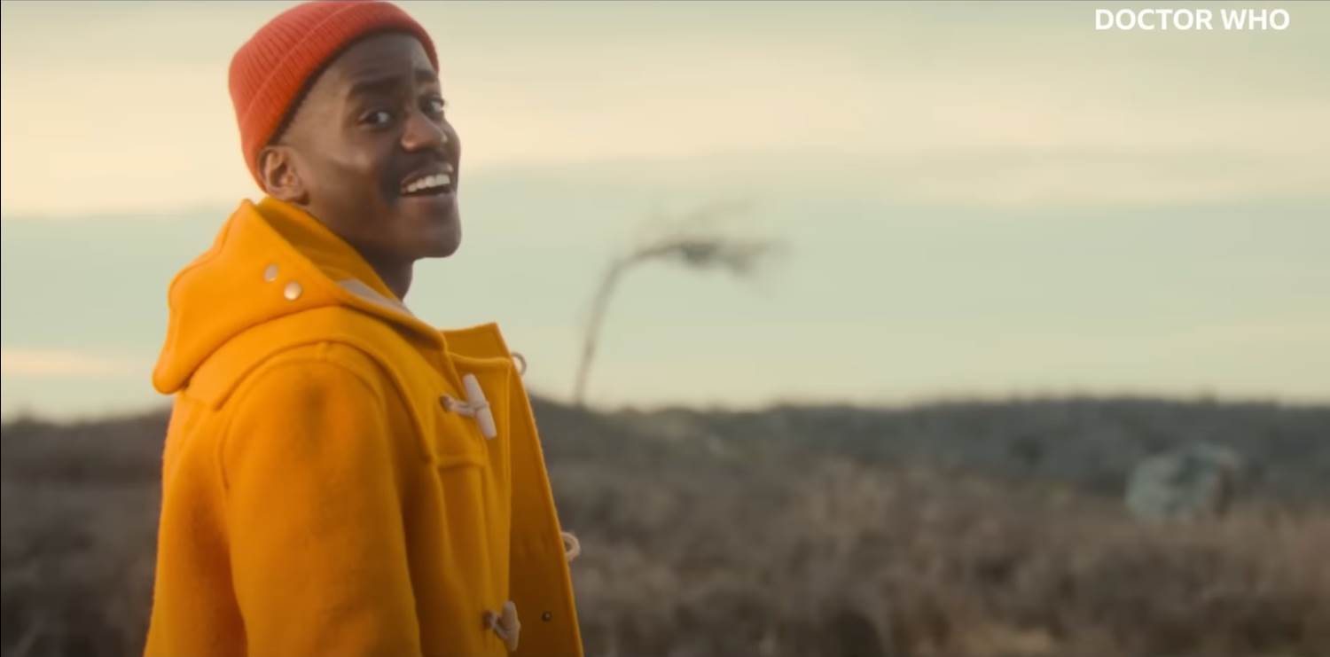 Finally, we get yet another new costume for the Doctor, who is seen wearing a yellow coat and a red beanie.