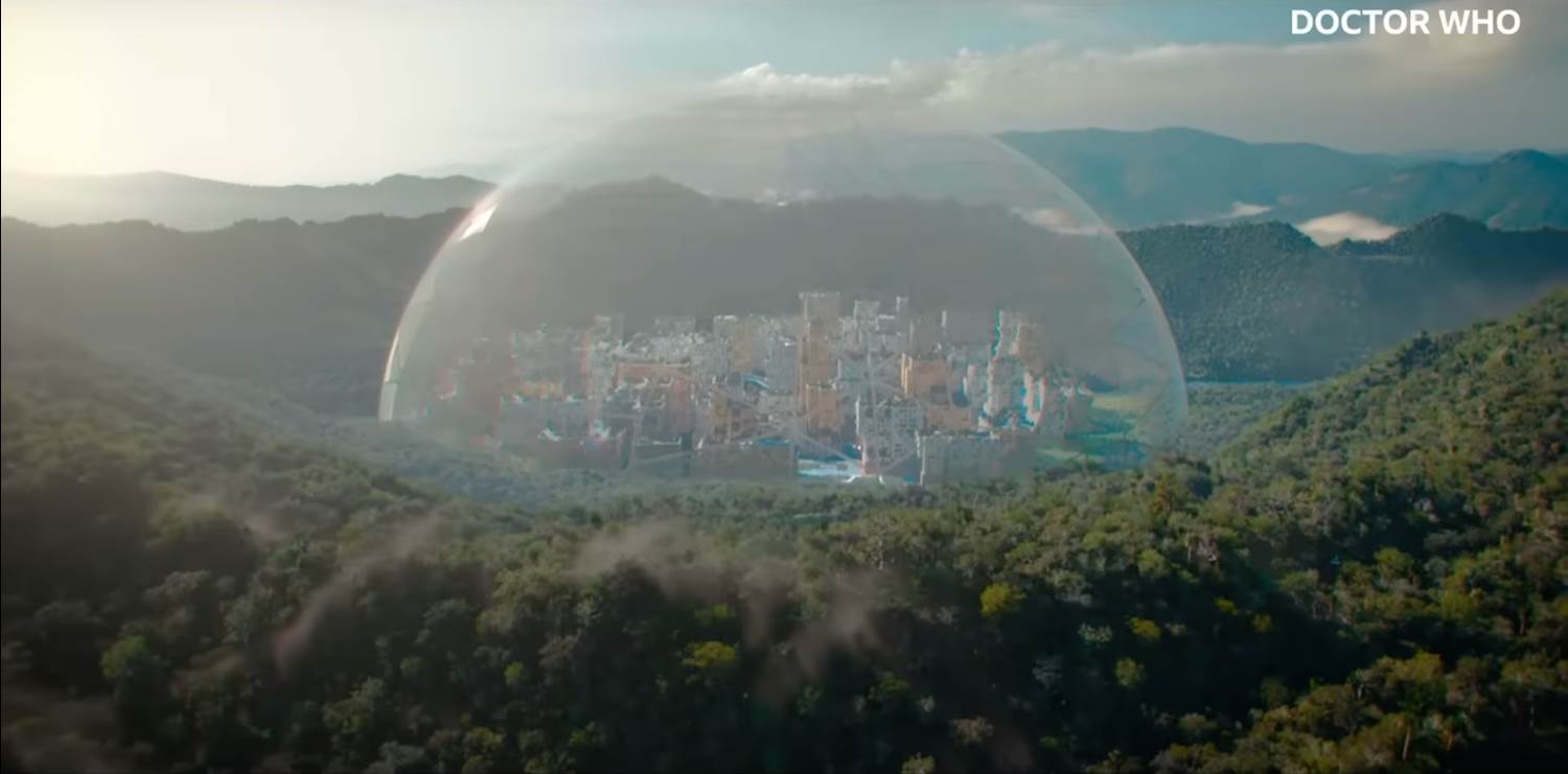One of the first new shots we get is of this futuristic city within a bubble, during an opening montage of quick clips from the season.
