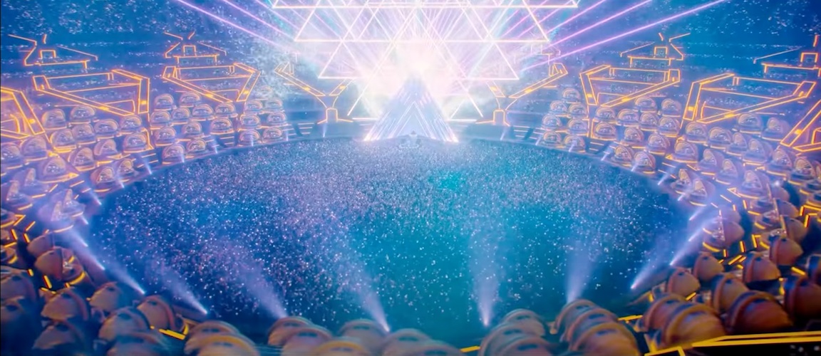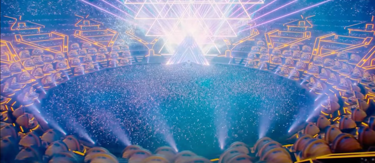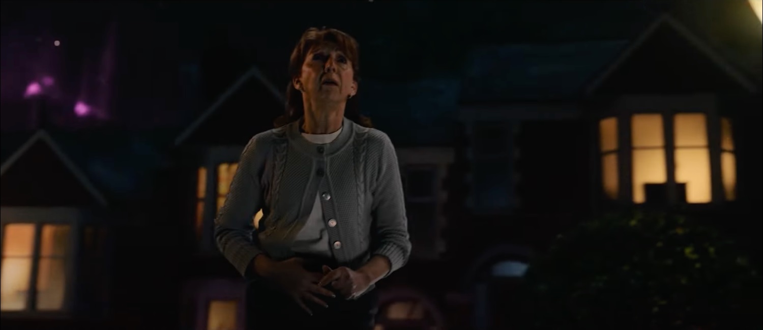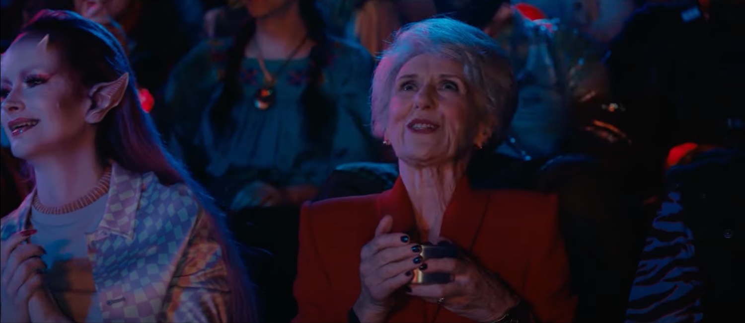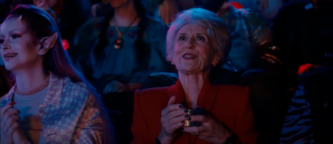 We then get a shot of the mysterious Mrs. Flood (Anita Dobson), seemingly sitting in the audience of the Interstellar Song Contest, saying “I love a good show."