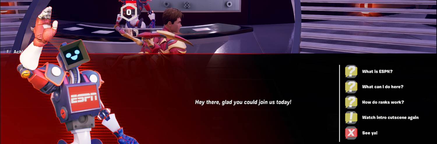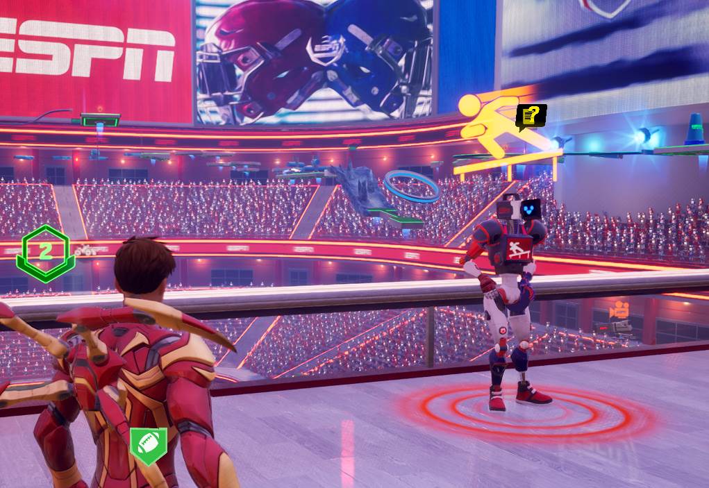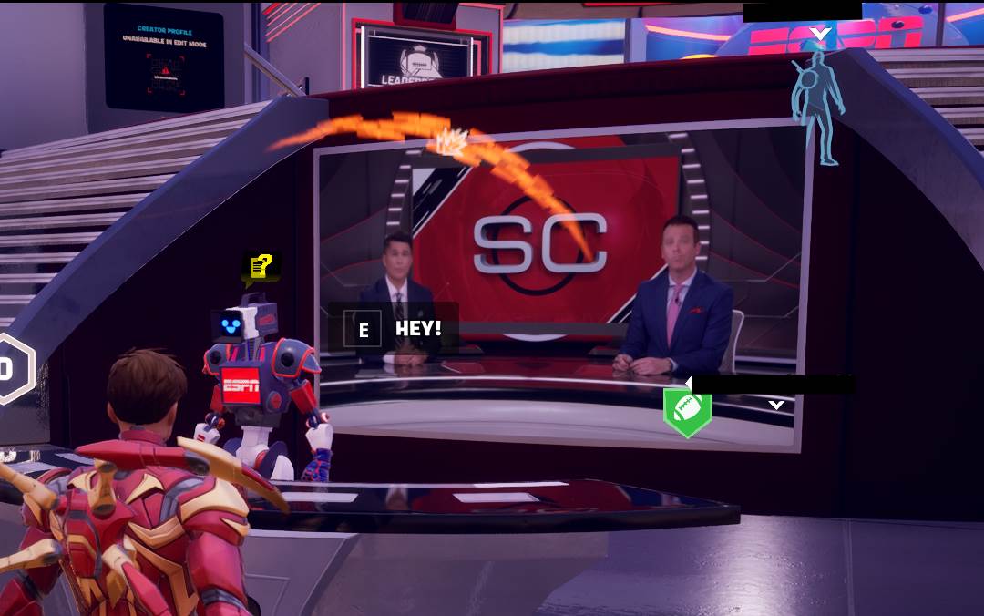Entering the map brings you into the game’s lobby where you are immediately welcomed with a video from SportsCenter’s Randy Scott and Gary Striewski. The pair will explain all the fun that can be had during your time in the game, with several different mini games and the main event, Touchdown Rush. You can also talk to the ESPN robot at the desk for an in depth explanation of the experience.