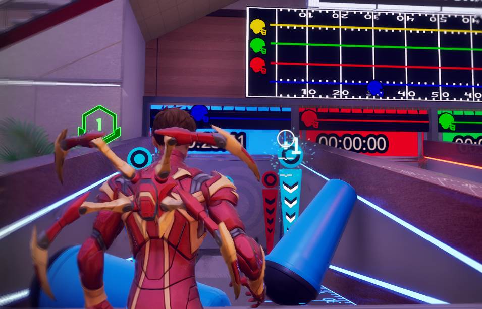 Kicking off my experience, I decided to check out a few of the mini-games before jumping into their “Payload Push" style main event. First up, I decided to try my luck at scoring a field goal in a quad bike. Starting at a platform straight from the entrance, players will have to launch themselves across the field through the field goal to collect the medallion. It was difficult to secure the quad bike with players actively standing by the spawn point, however, the challenge was a lot of fun. With the field goal moving side to side, players will have to time their jump carefully.