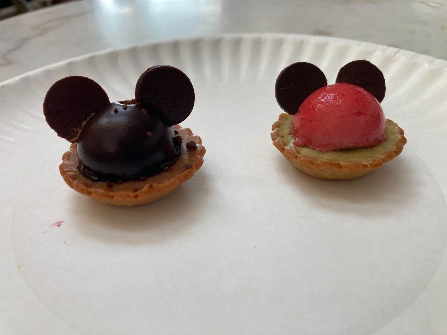 Starting with the World Taste offering, guests could purchase tickets that would entitle them to try up to 8 sample dishes at a variety of participating restaurants. The folks at the Anaheim Packing District were nice enough to supply me with a complimentary pass, allowing me to try a couple of items. My first stop was Le Parfait Paris, where my pass scored me two adorable tarts that clearly evoke the iconic Mickey and Minnie. Naturally, both were also delicious.