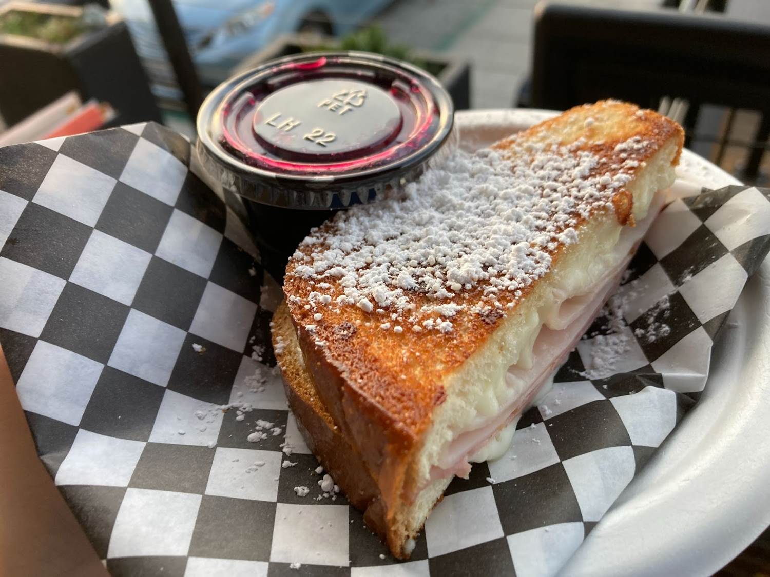 My other sample came from Black Sheep Grilled Cheese Bar, which channeled a Disneyland classic dish for its “Mozzy" Cristo. This sandwich included turkey, ham and melty mozzarella cheese, with the bread being topped with powdered sugar. A blueberry compote was also served on the side from dipping. As much as I enjoy the monte cristos in the park, I have to say that I preferred this version as it had all the same great flavor but didn’t feel nearly as heavy. In other words, I enjoyed this sample quite a bit and even considered going back for a second (although the location was quite popular so it would have taken some time to get that additional sandwich).